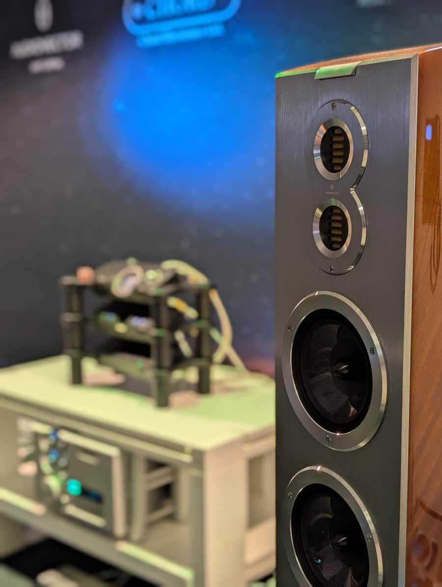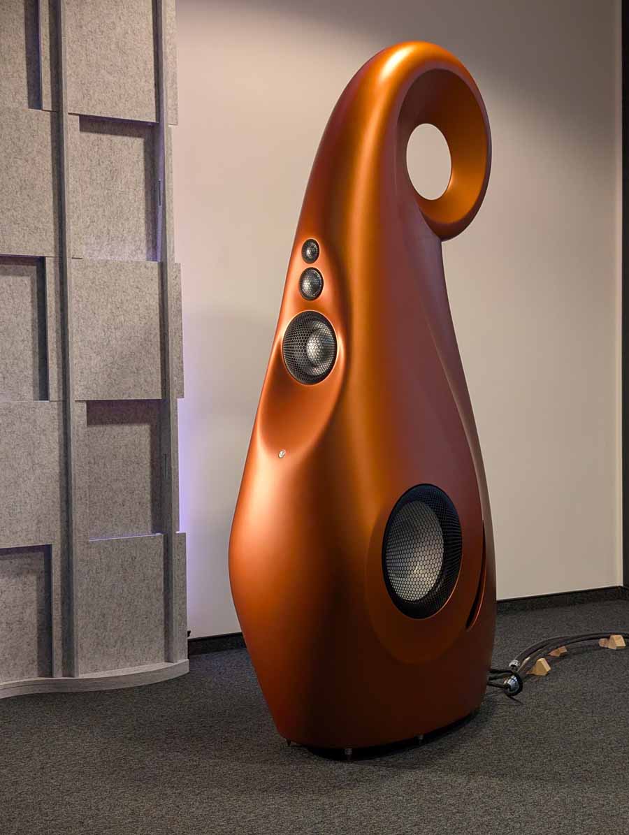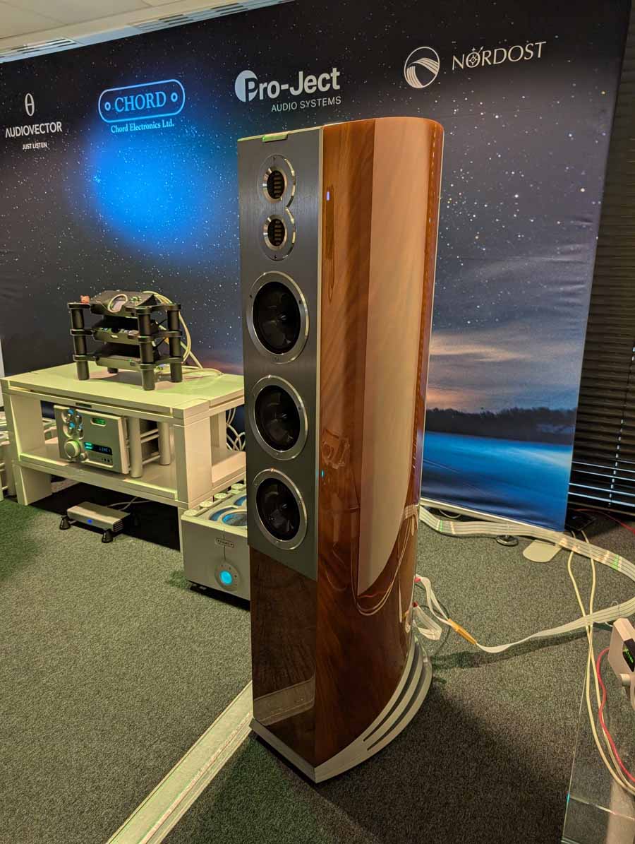 The new Kroma Atelier speakers are really very interesting. Javier Millán has been designing and hand-building loudspeakers since the age of 14. Now working alongside his son, the father-and-son team have created what they describe as their most complete and unconstrained project to date. The Maribel embodies Kroma Atelier’s pursuit of natural, musical reproduction and traditional craftsmanship, says the company’s press information. The Kroma Atelier Maribel is a large four-way floorstanding loudspeaker with a driver complement of dual AMT tweeters, a 3-inch dome midrange, two 8-inch paper-cone mid-woofers and two 15-inch paper-cone woofers. The design offers a claimed frequency response of 20Hz to 27kHz, with a sensitivity of 93dB and selectable impedance of 8 or 4 ohms via four binding posts. Recommended amplifier power ranges from 20W to 1000W. Each speaker measures 201cm tall and weighs 220kg. Price is 400K Euros plus taxes. Great to hear a brand that isn’t afraid to play electronic music and play at realistic volumes. We got Liquid Hook by Liquid Soul and Captain Hook and inevitably Ghost Rider’s Make Us Stronger.