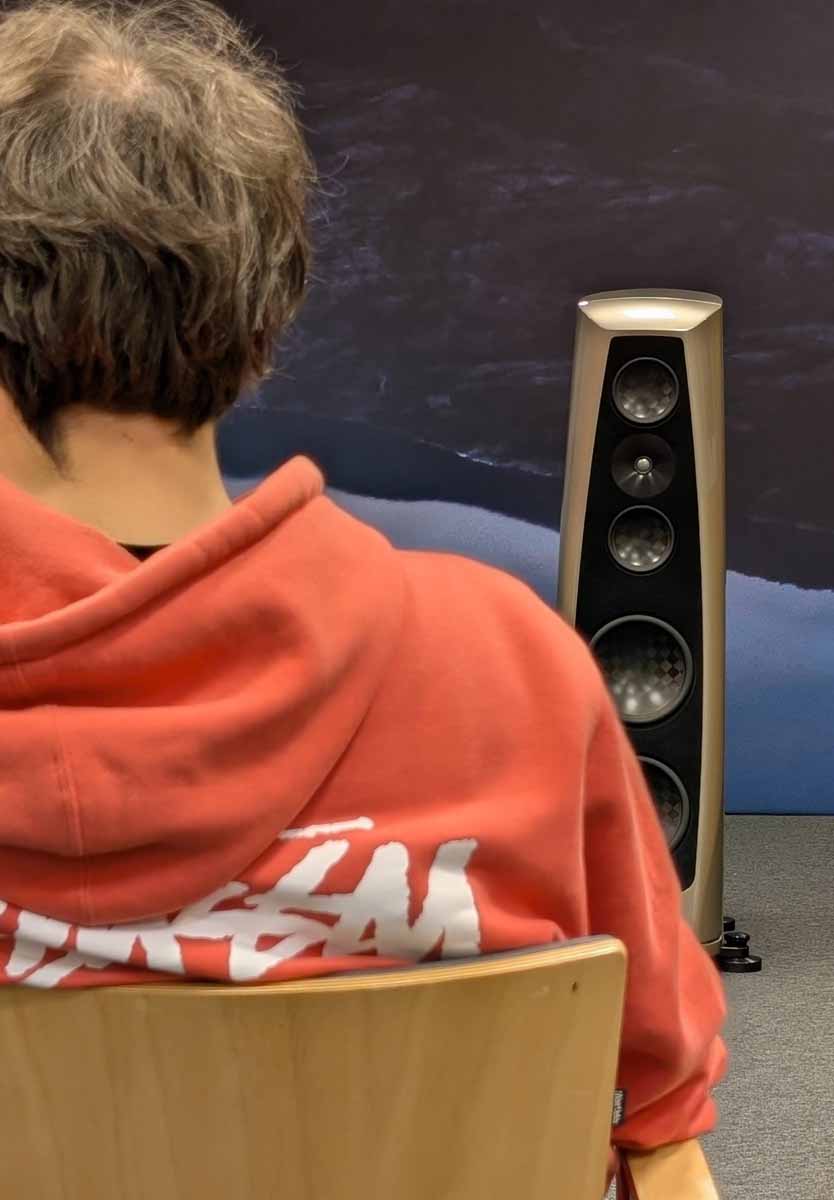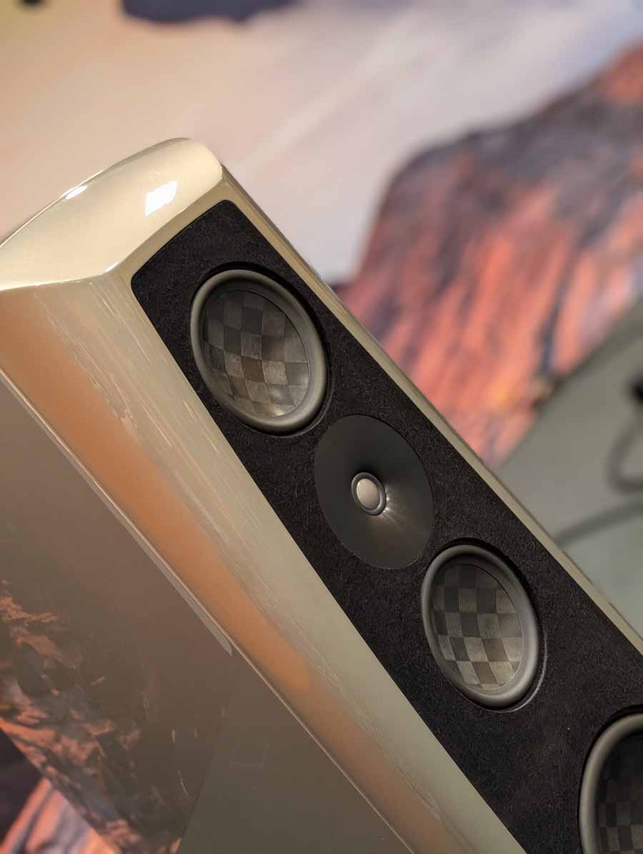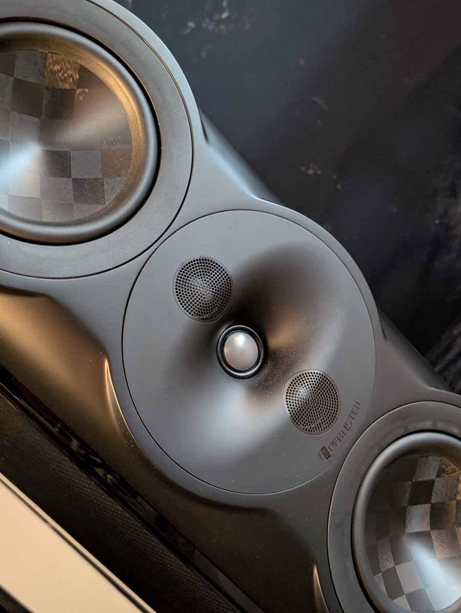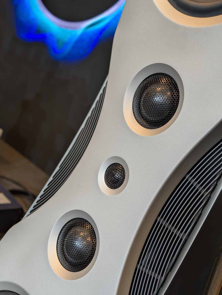 The new Kroma Atelier speakers are really very interesting. Javier Millán has been designing and hand-building loudspeakers since the age of 14. Now working alongside his son, the father-and-son team have created what they describe as their most complete and unconstrained project to date. The Maribel embodies Kroma Atelier’s pursuit of natural, musical reproduction and traditional craftsmanship, says the company’s press information. The Kroma Atelier Maribel is a large four-way floorstanding loudspeaker with a driver complement of dual AMT tweeters, a 3-inch dome midrange, two 8-inch paper-cone mid-woofers and two 15-inch paper-cone woofers. The design offers a claimed frequency response of 20Hz to 27kHz, with a sensitivity of 93dB and selectable impedance of 8 or 4 ohms via four binding posts. Recommended amplifier power ranges from 20W to 1000W. Each speaker measures 201cm tall and weighs 220kg. Price is 400K Euros plus taxes. Great to hear a brand that isn’t afraid to play electronic music and play at realistic volumes. We got Liquid Hook by Liquid Soul and Captain Hook and inevitably Ghost Rider’s Make Us Stronger.