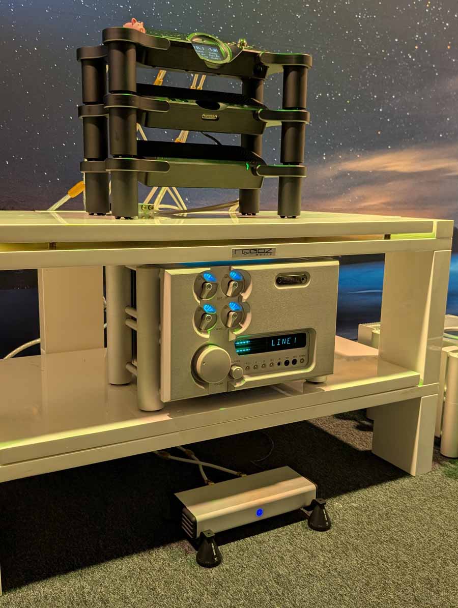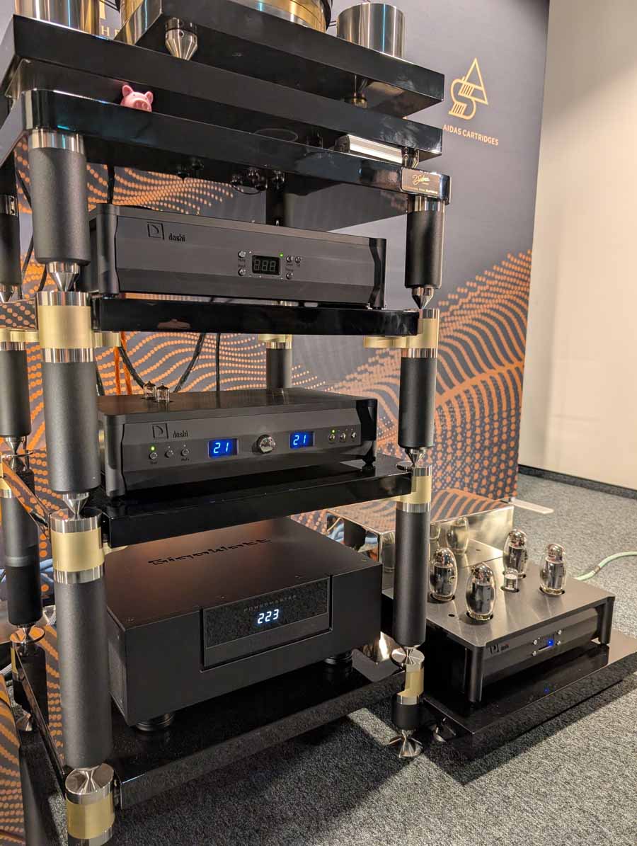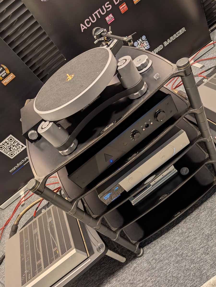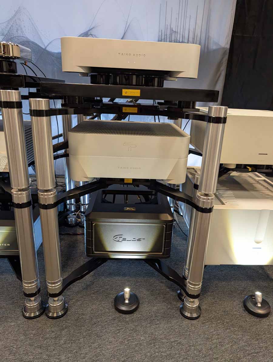 Franc Audio Accessories joined the presentation with anti-vibration products, including Alu Master Reference Series racks, 15th Anniversary Alu Master Reference platforms, Wood Block racks, and Wood Block Fat platforms.