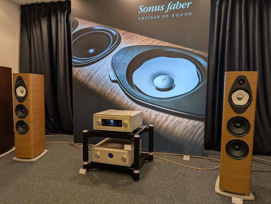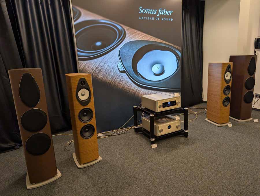 Italian loudspeaker brand Sonus faber presented their Sonetto V G2 and VII G2 speakers with a system fronted by Marantz electronics. They played us Dance Macabre, which I haven’t heard since I was about ten years old where we were forced to do interpretive dance to it.