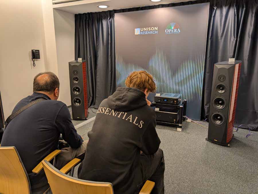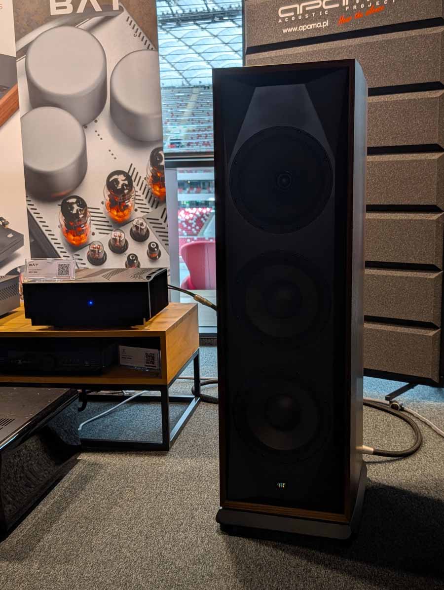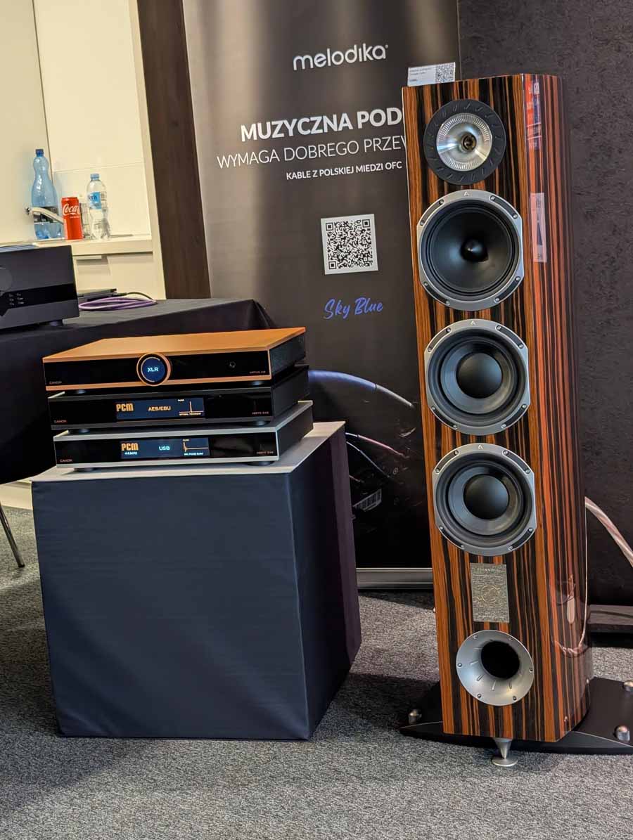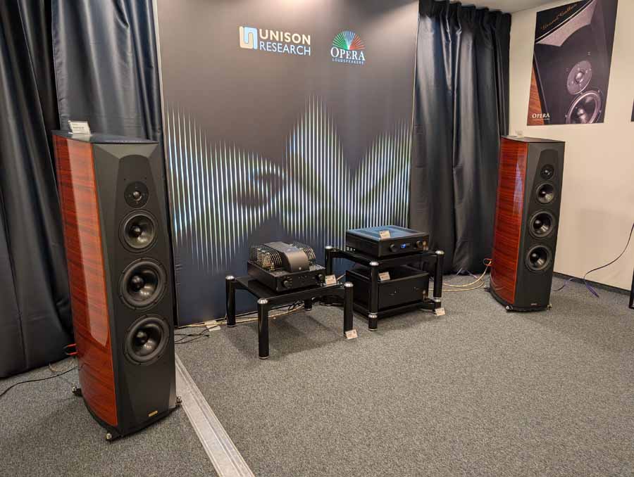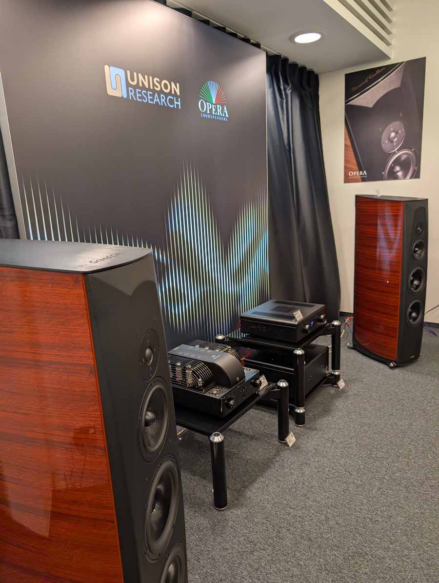 A Unison Research valve integrated amplifier was on show, but what we got to hear was the Unico Pre and Unico DM power amp. The speakers presented at Warsaw were the Opera Grand Callas special edition which are a beautiful looking and quite large loudspeaker.