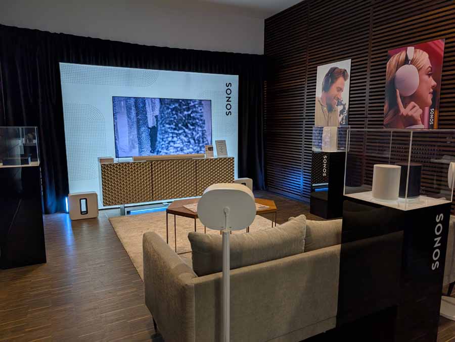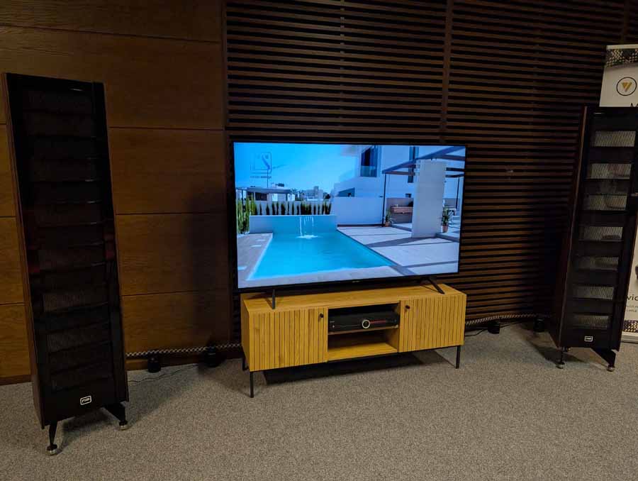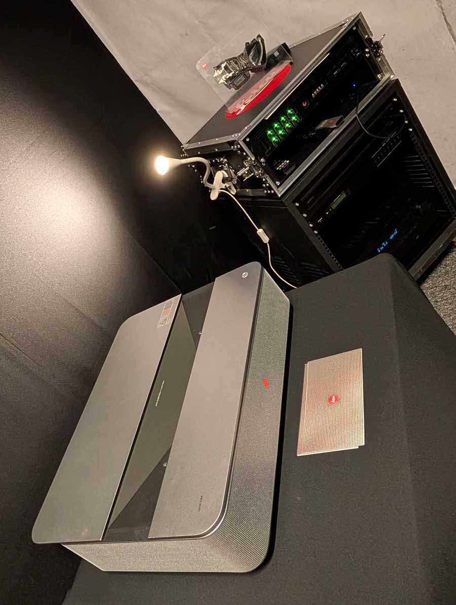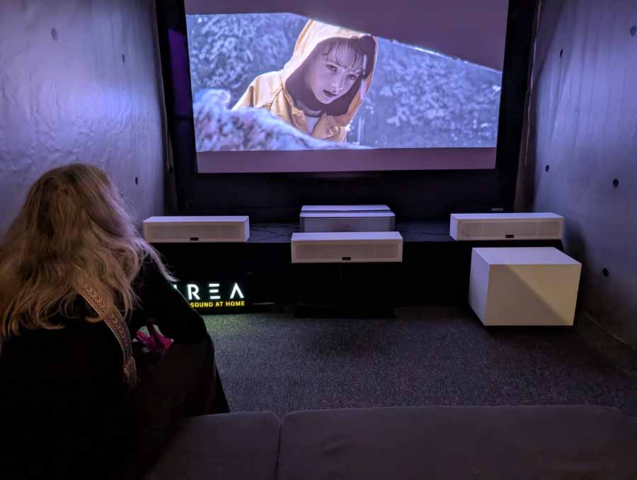 Room 106 hosted premiere demonstrations of Indiana Line loudspeakers. Displays also covered Loewe Stellar televisions and XGIMI Horizon 20 smart laser projectors, led by the Horizon 20 Max with Google TV and up to 5700 ISO lumens.