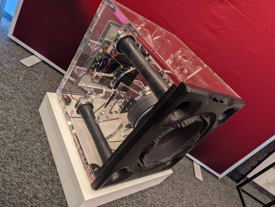 A static display showed off the very cute little Kupid speakers. I was also drawn to a perspex SUB V-16 F subwoofer.