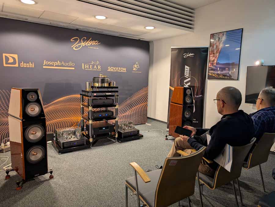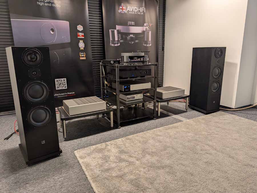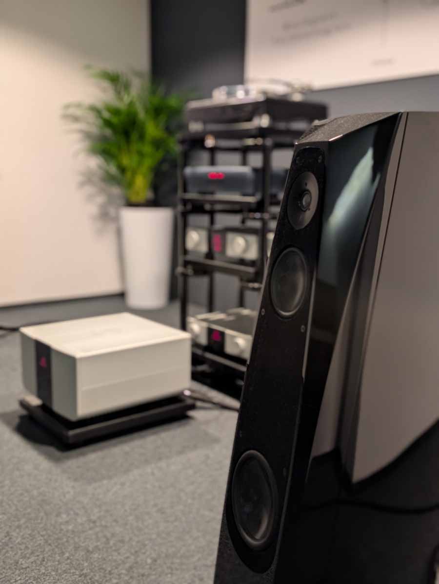 The system featured Dynaudio Contour 20 Black Edition and Confidence 60, driven by Circle Labs M 500 power amplifiers and the P 300 preamplifier. Dynaudio’s in house driver work has gained awards including EISA 2025 to 2026 and the German Design Award.