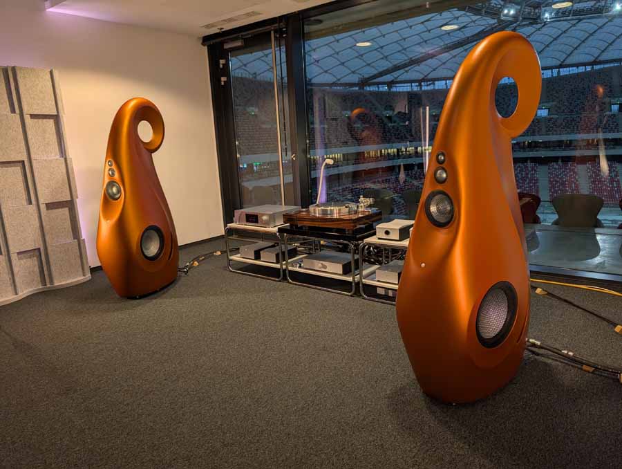 Also on show were the funky round Grand Horizon speakers that we saw at the Dutch Audio Event, which were indeed in a champagne colour.