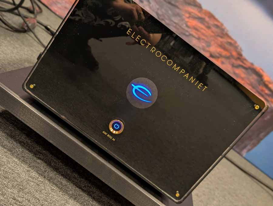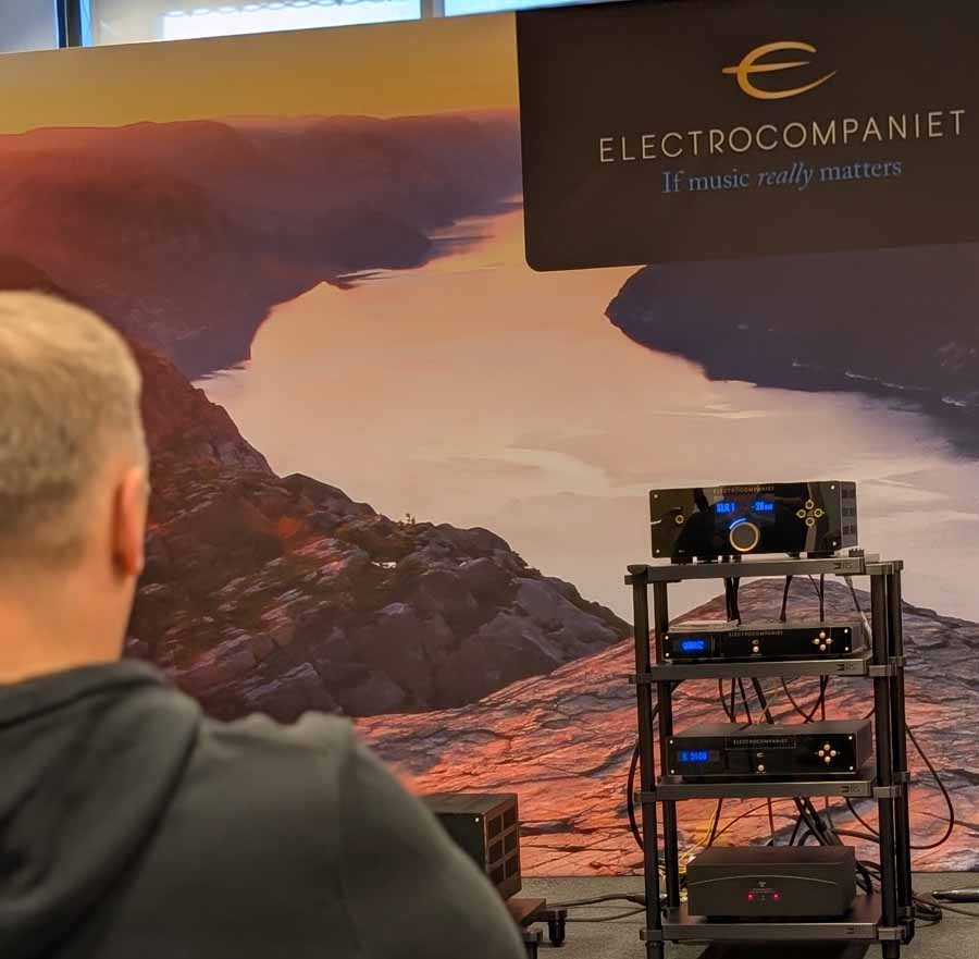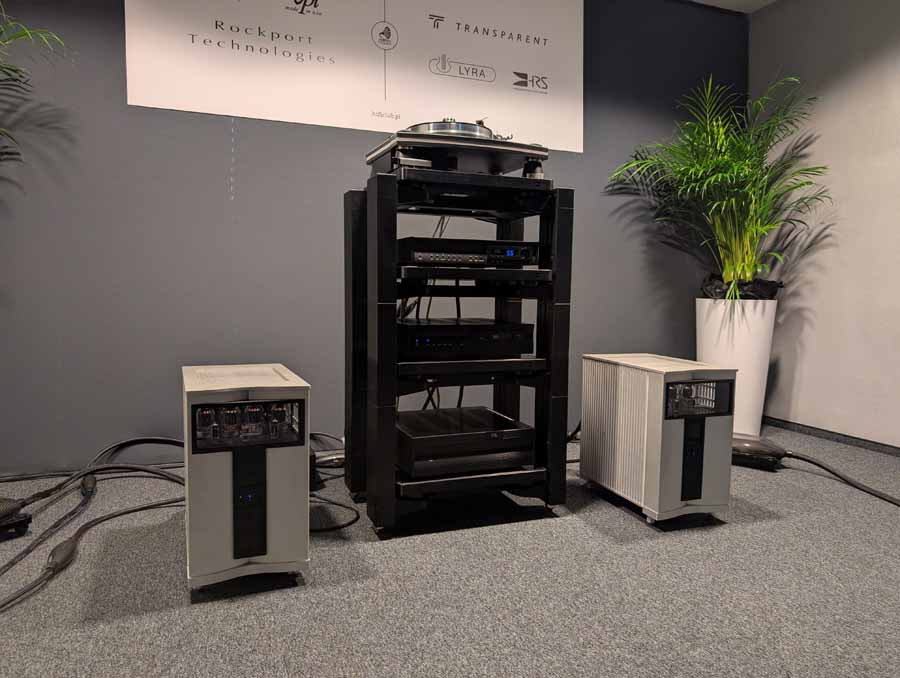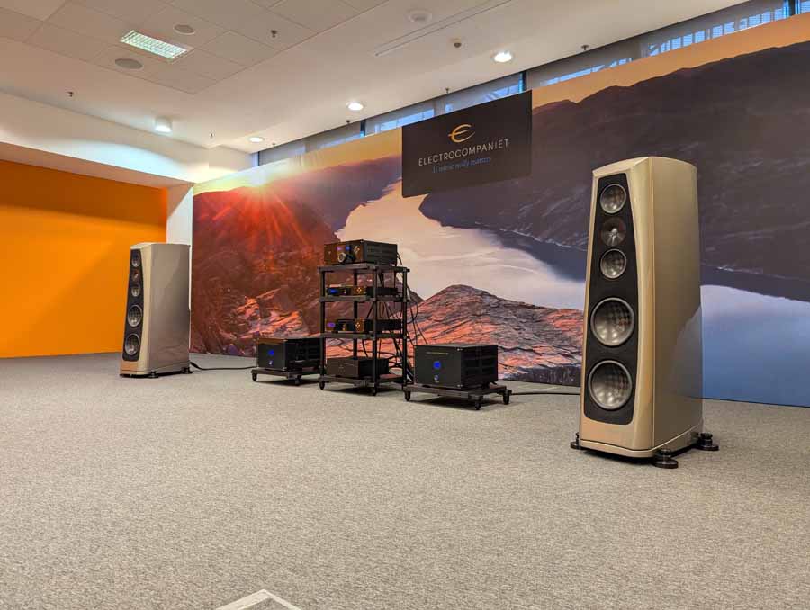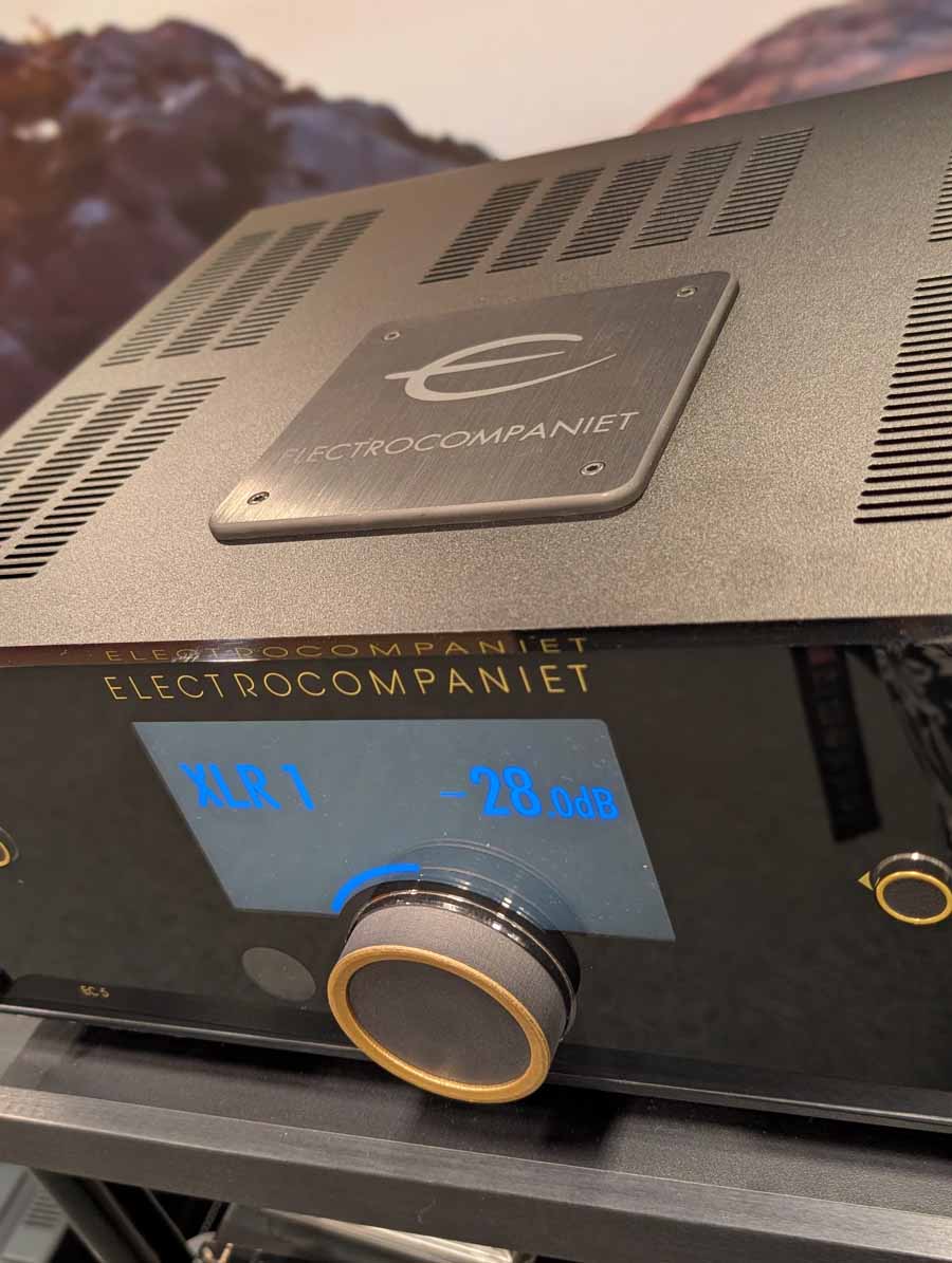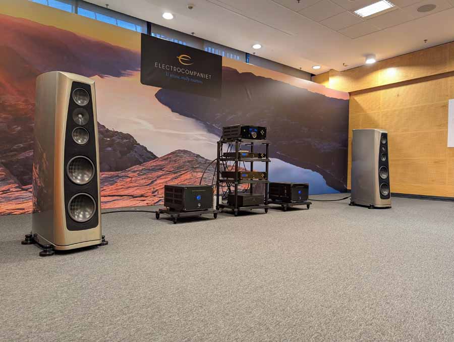 HiFi Club had a number of systems and rooms at the show, but in this one was a system featured Electrocompaniet AW 800 monoblocs, EC 5 Reference preamplifier, ECM 1 MkII streamer, and EMC 1 MkV CD player with Rockport Technologies Lyra loudspeakers.