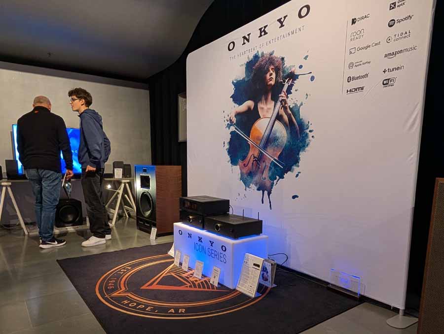 This was a well set up room showing a whole load of the brands above on static displays but also a system fronted by the Onkyo Icon series electronics and a pair of Klipsch Cornwalls.