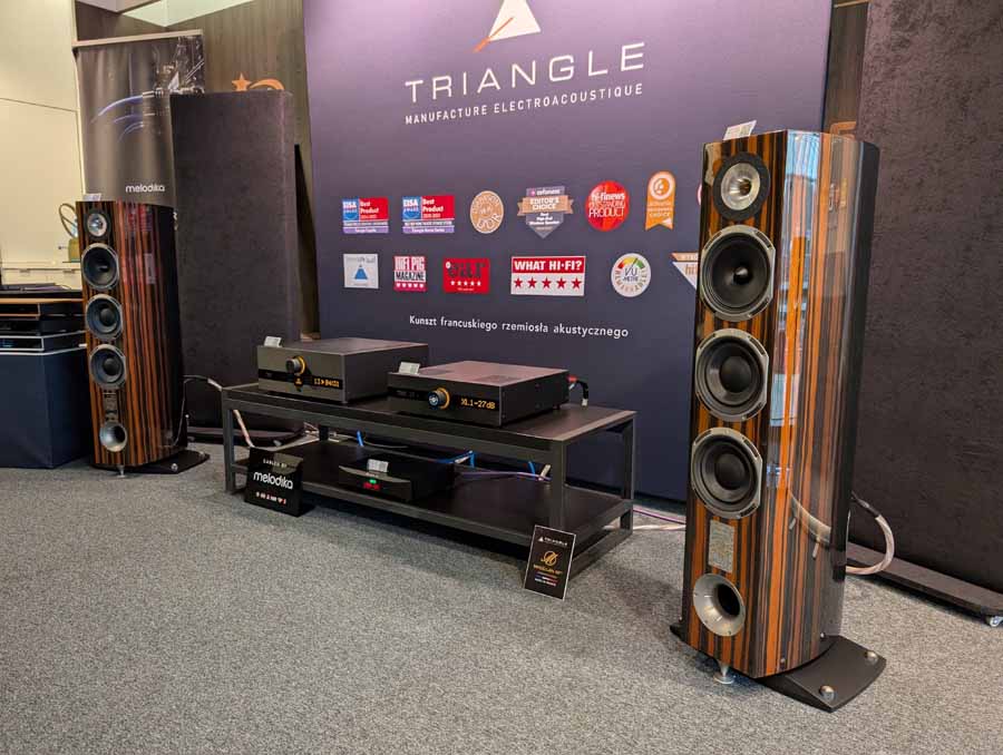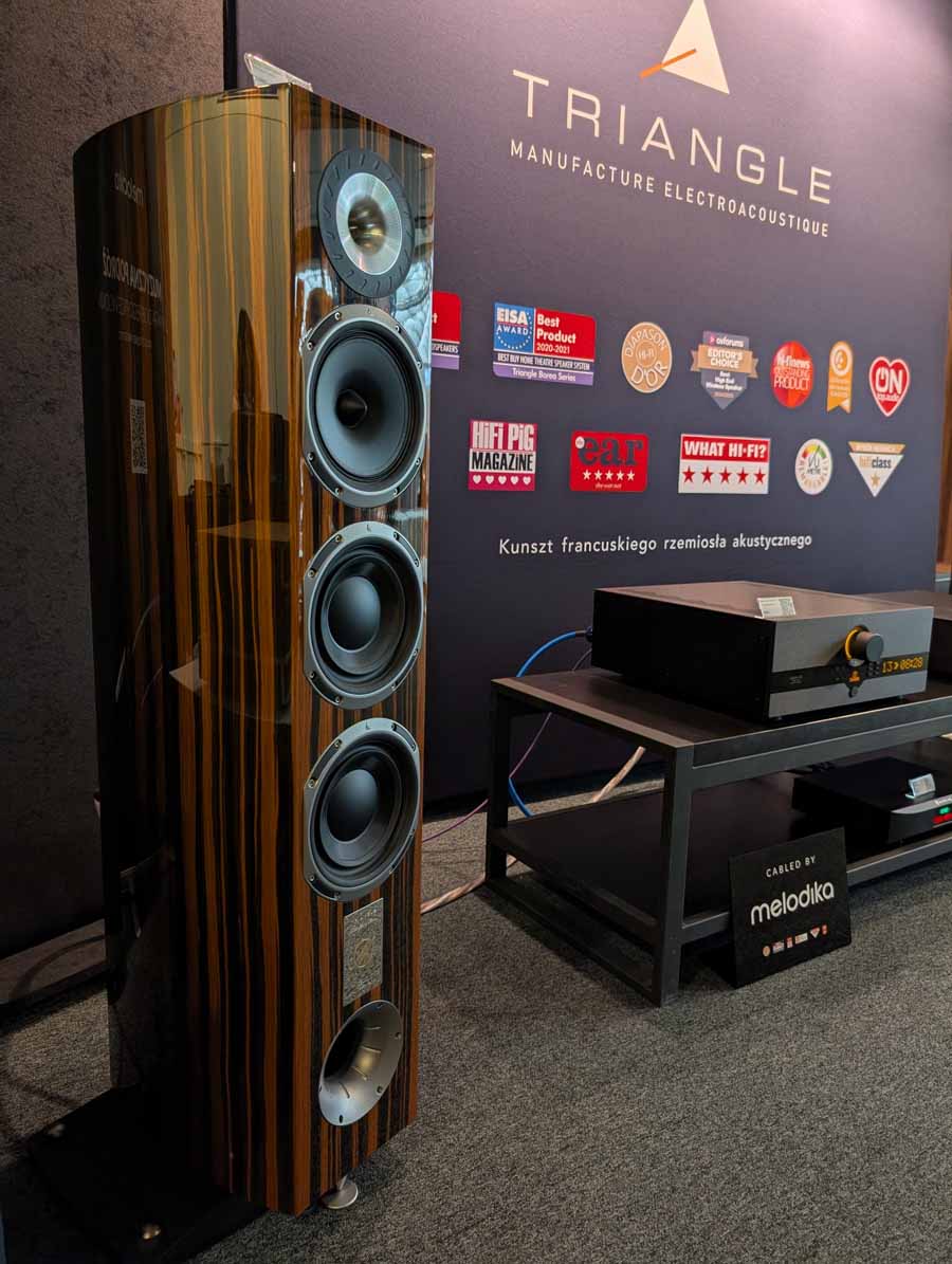 Many of the rooms that precede this one were being run by Polish distributor Rafko. In this room we had the excellent Magellan 40th anniversary Triangle floostanders in a rather beautiful finish partnered with the Slovakian brand Canor’s electronics. The source was the Gaia C2 a tube based DAC with a CD player onboard. The amp was the A3 Virtus. We reviewed the excellent Canor Virtus A3 here