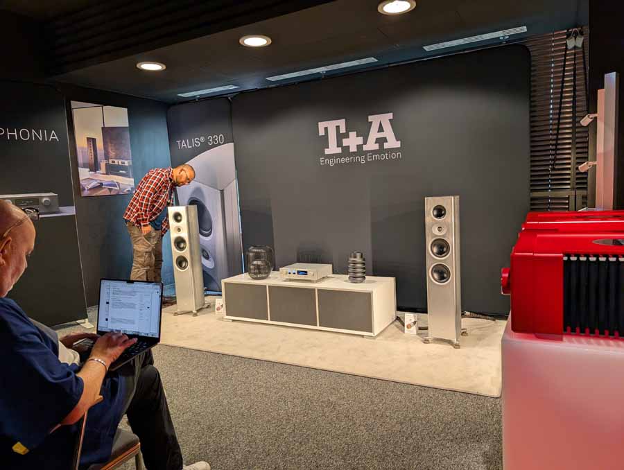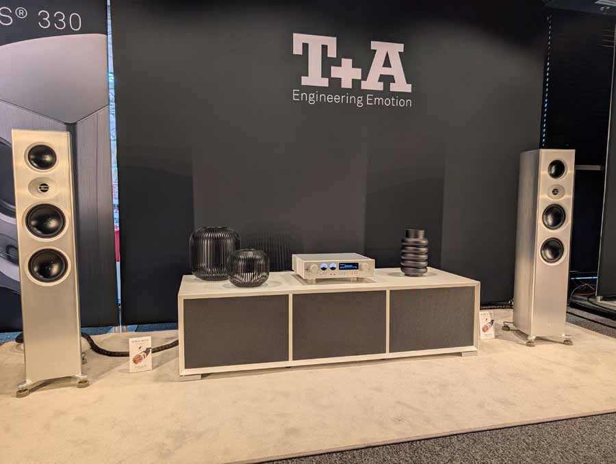 German brand T+A had a very cool room at Warsaw that was really nicely laid out and lit. They were showing off a number of products in static display. However the main feature was the 8500 Euro Symphonia. Symphonia is an is an all-in-one “without compromise” and so it uses the the Pre stage from R series of products, the amp is a Purify module with a sine wave power supply from the brands higher level products, and it has all the usual connectivity you’d expect. It looks fab in the brushed silver finish and the round VUs are very cool. Speakers were the Talis 330 floorstanders.