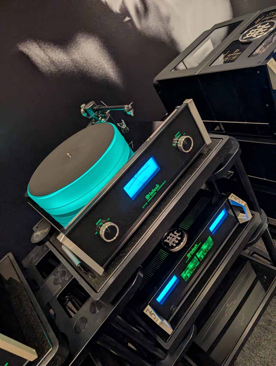 In the next room was a pair of Rockport Technology speakers being powered by a very understated stack of McIntosh electronics. Specifically, McIntosh Laboratory showed MC2.1KW 2000 watt monoblocks, C12000 preamplifier, MCD12000 CD and SACD player, DS200 streamer, and the MT10 turntable with a Lyra Etna Lambda cartridge. Rockport Technologies Orion loudspeakers completed the system.