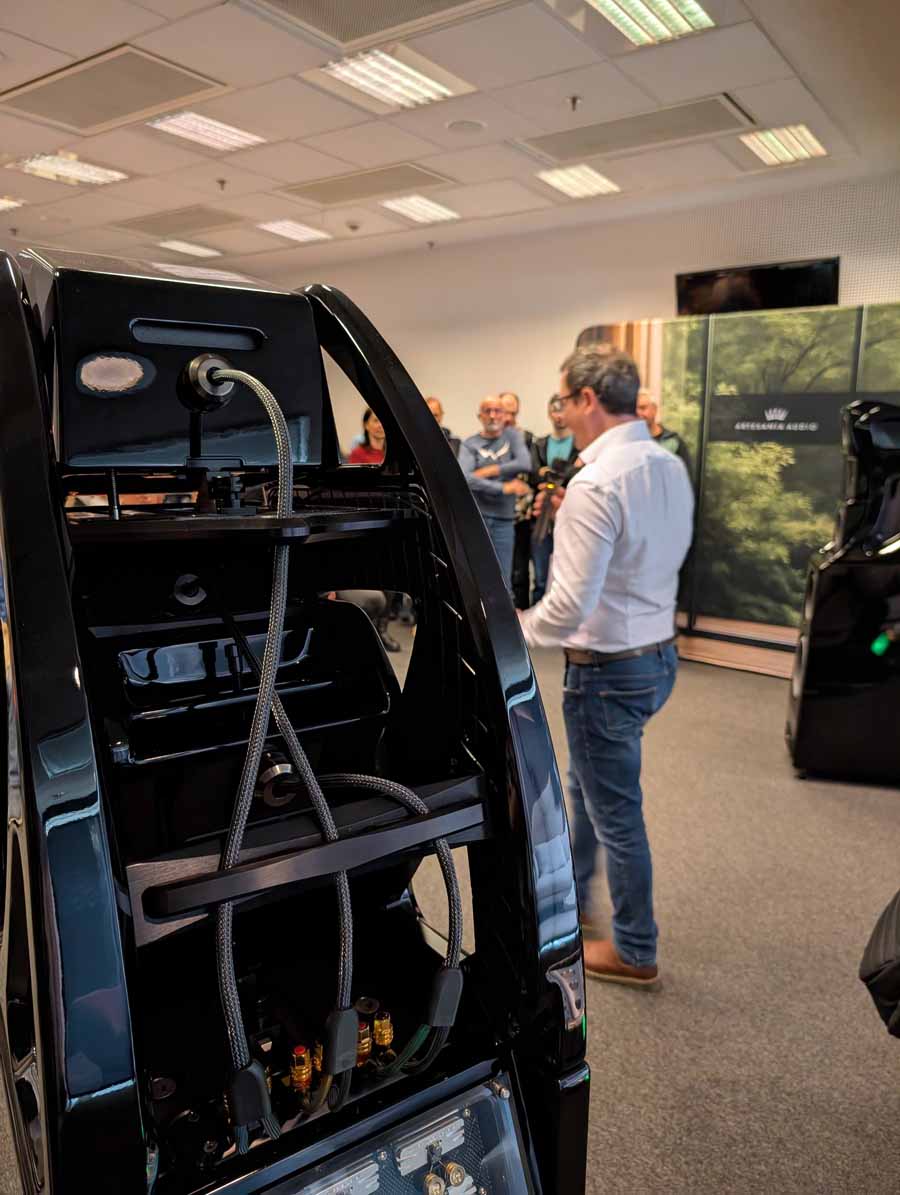 All cables in the room were by David Laboga and they alone added up to 40 or so grand. The total price of the kit in this room was a tad shy of half a million euros, and boy, did it sound great in this huge room, cleverly split so you could sit in front of, or behind, the system.