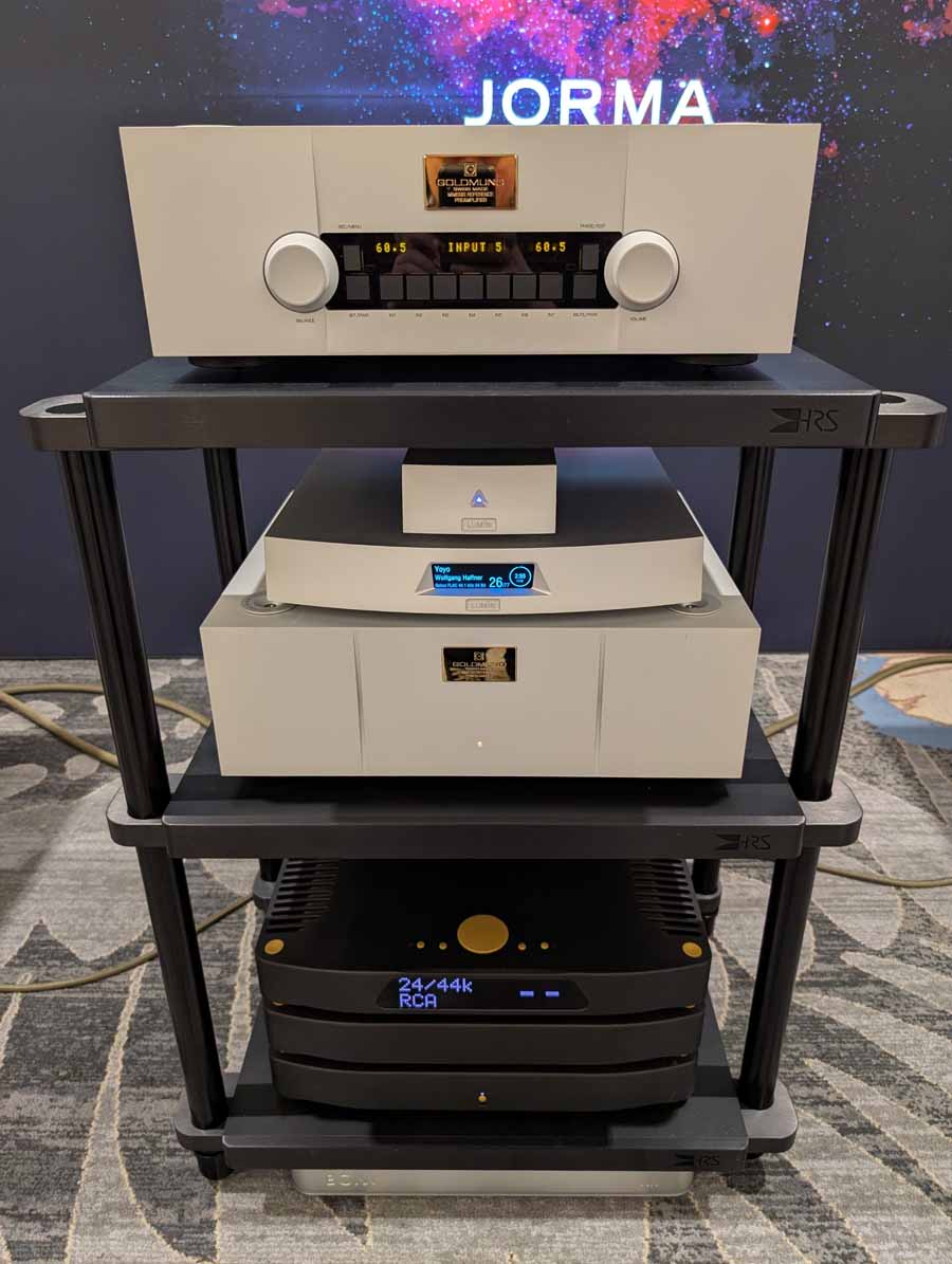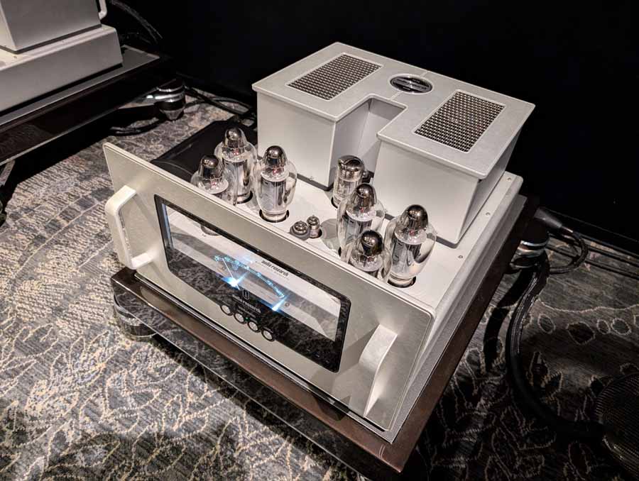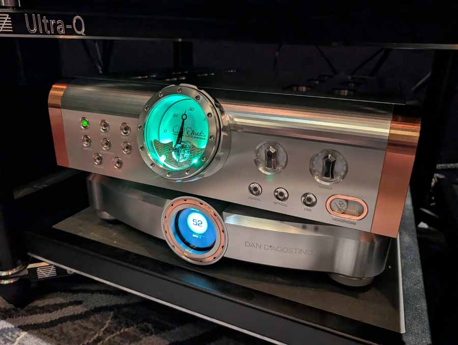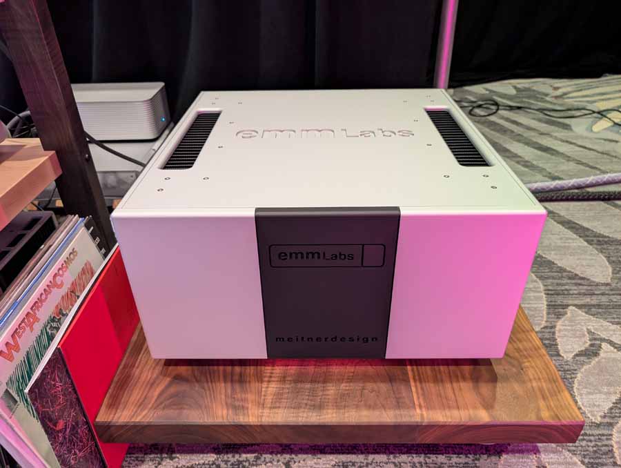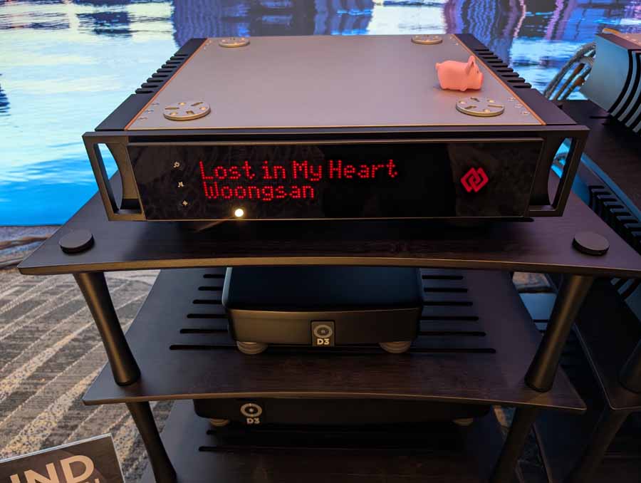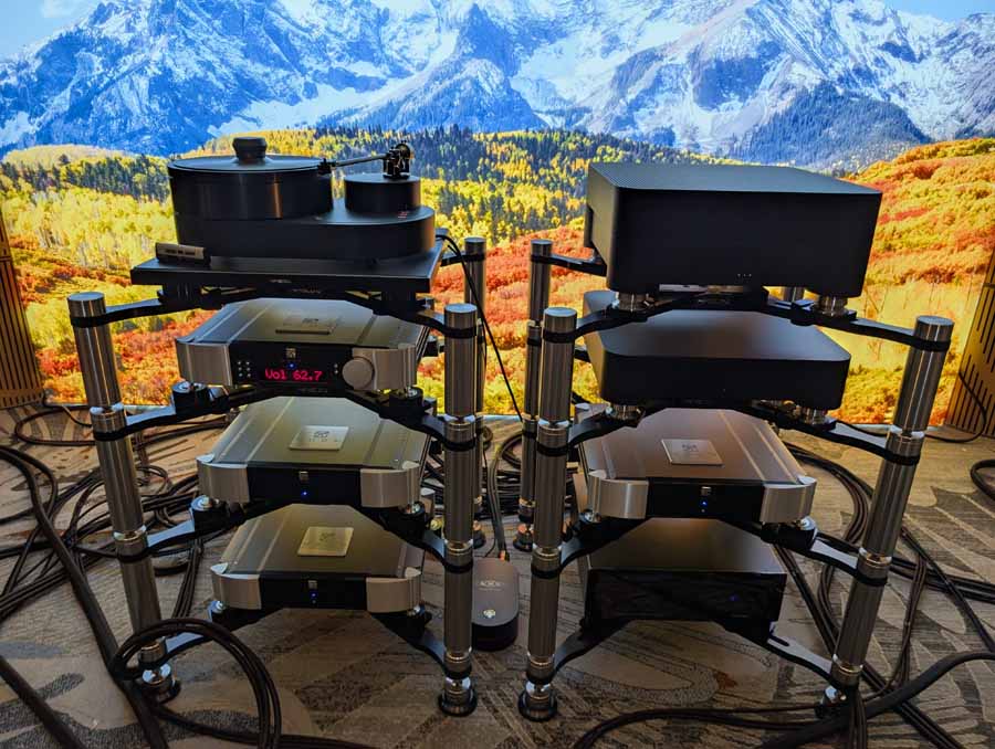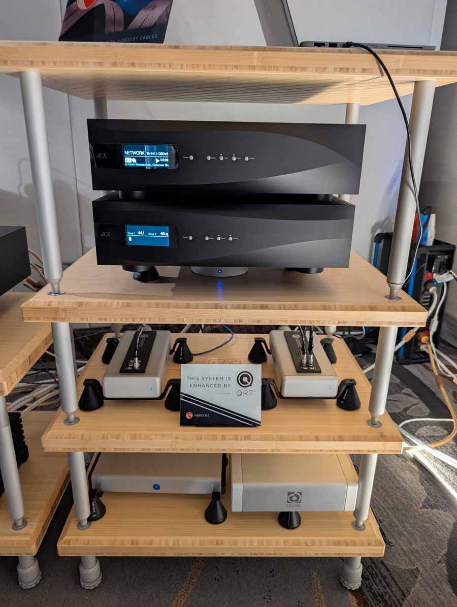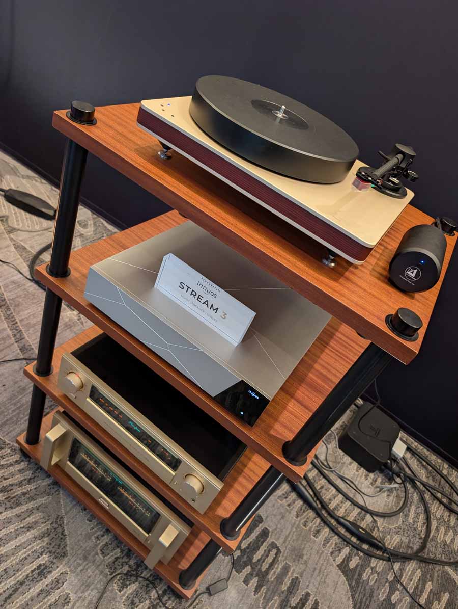 They had the DS200 streaming DAC, C2800 preamp, and MC462 power amp from McIntosh, with and AMG turntable, DS Audio optical cartridge, and DS Audio phono stage, with Ansuz cabling and power conditioning.