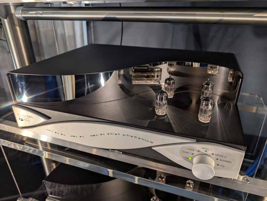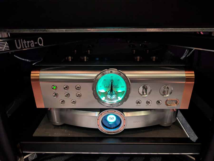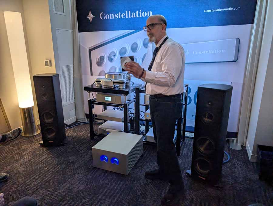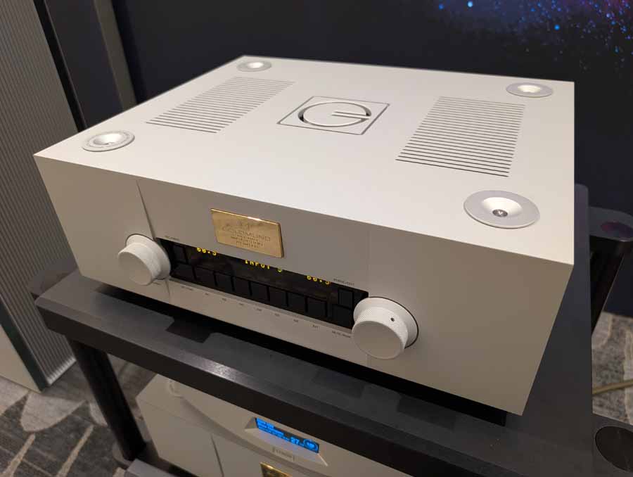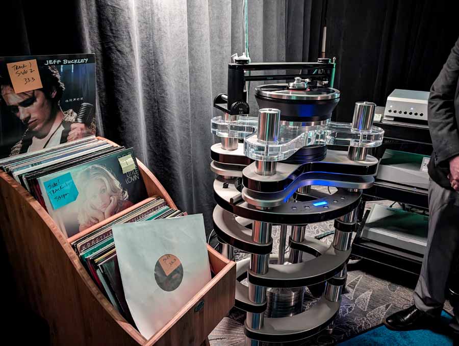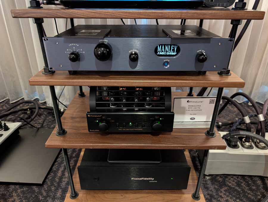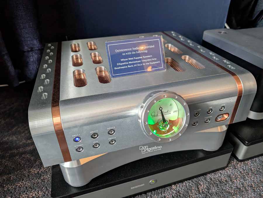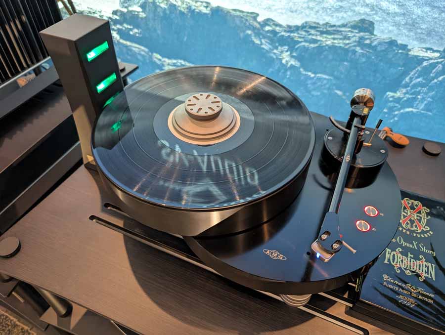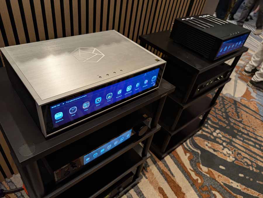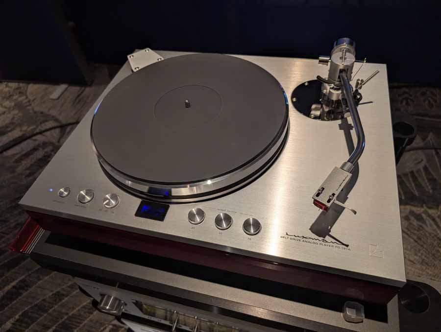 They had the DS200 streaming DAC, C2800 preamp, and MC462 power amp from McIntosh, with and AMG turntable, DS Audio optical cartridge, and DS Audio phono stage, with Ansuz cabling and power conditioning.