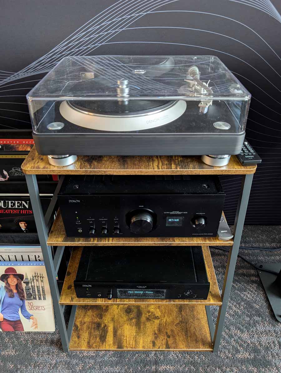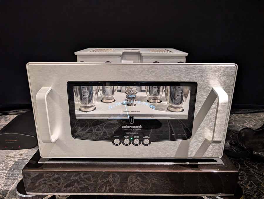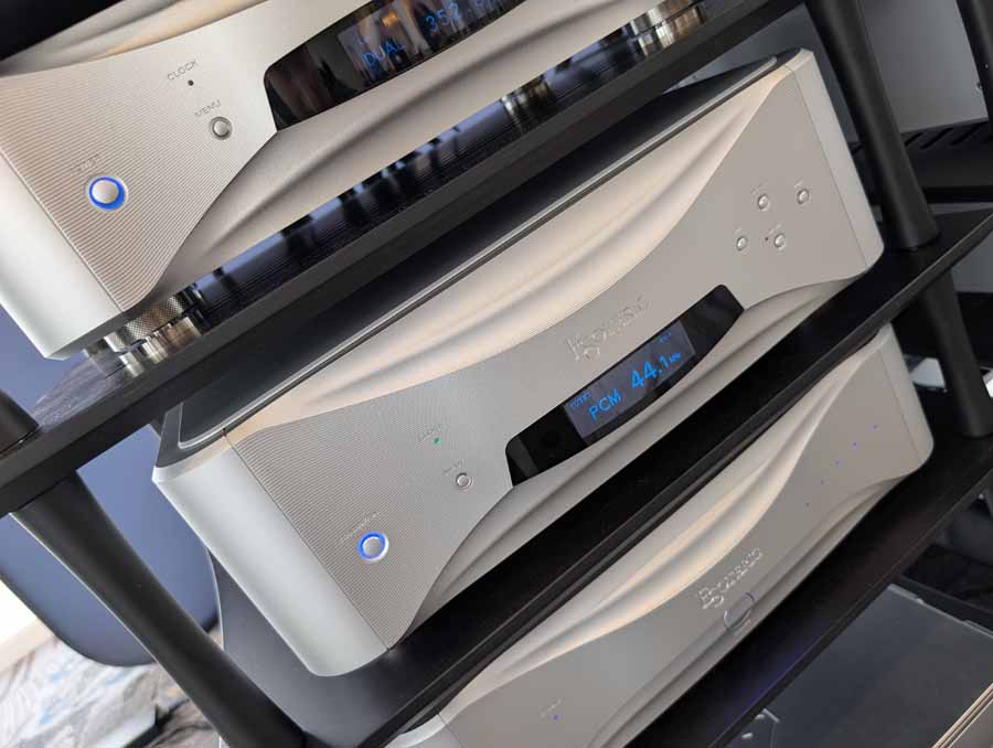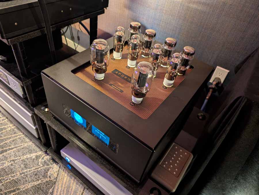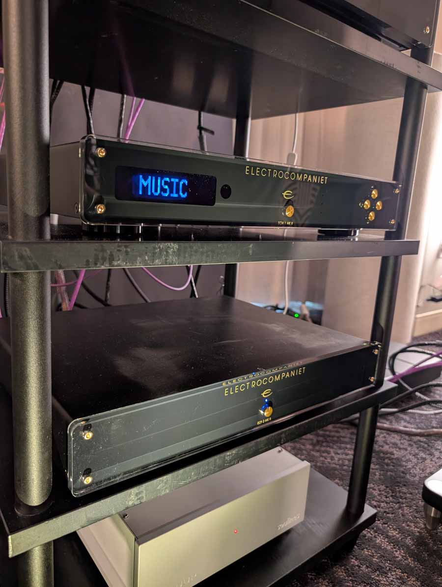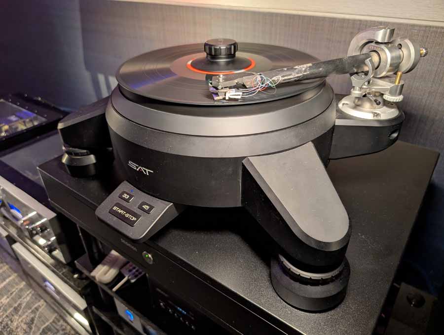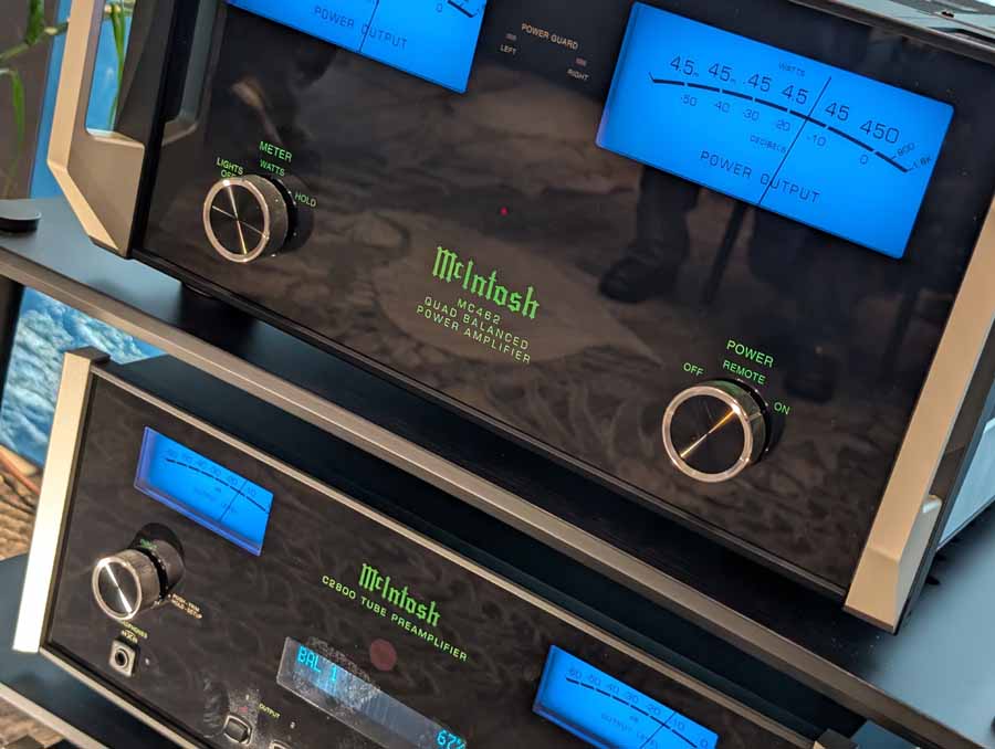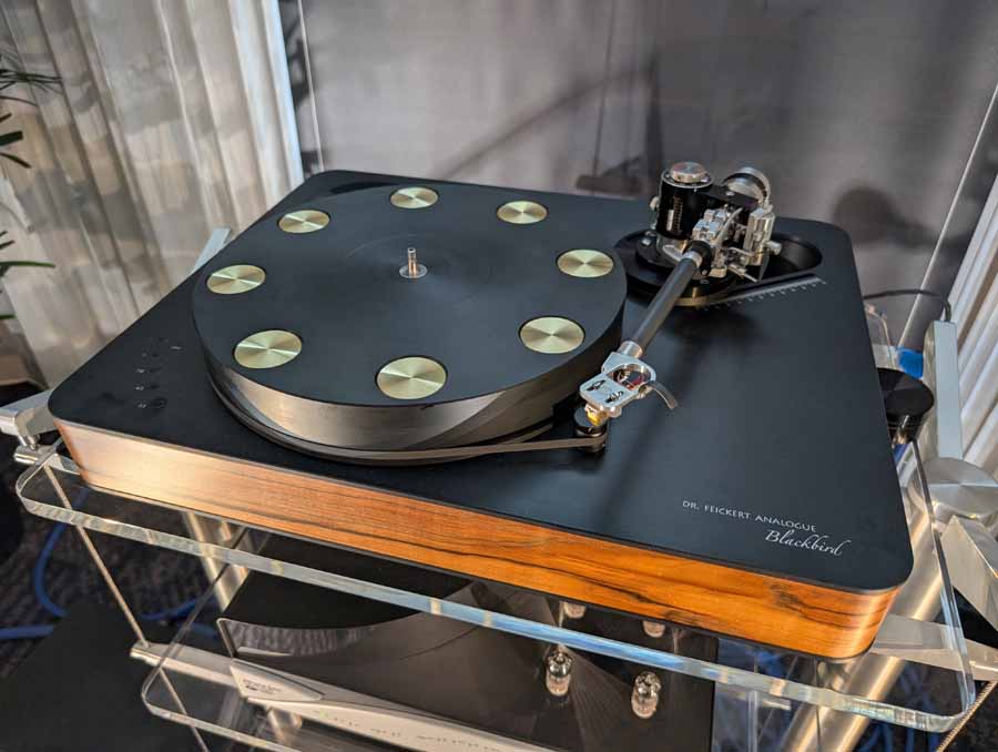 They had the DS200 streaming DAC, C2800 preamp, and MC462 power amp from McIntosh, with and AMG turntable, DS Audio optical cartridge, and DS Audio phono stage, with Ansuz cabling and power conditioning.