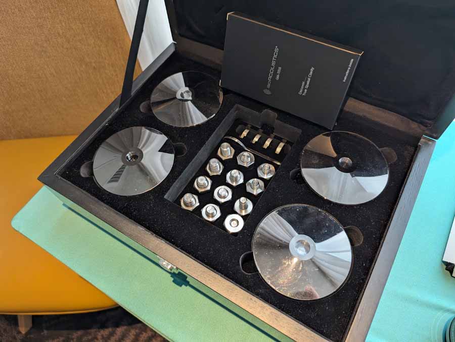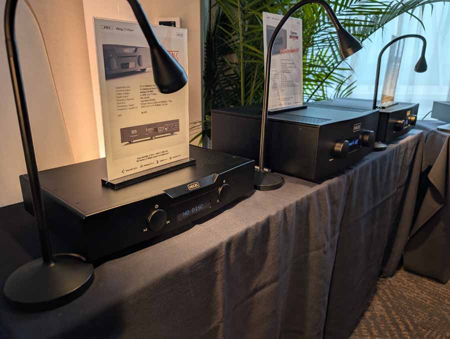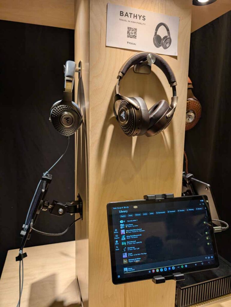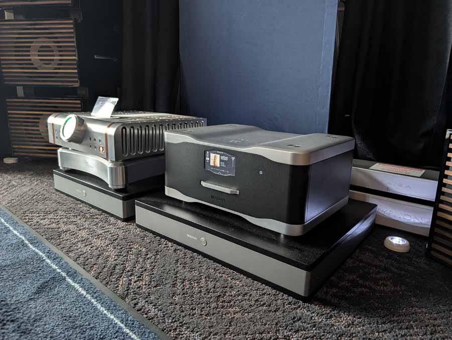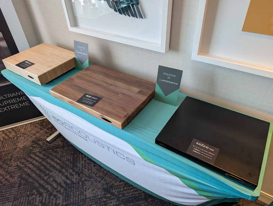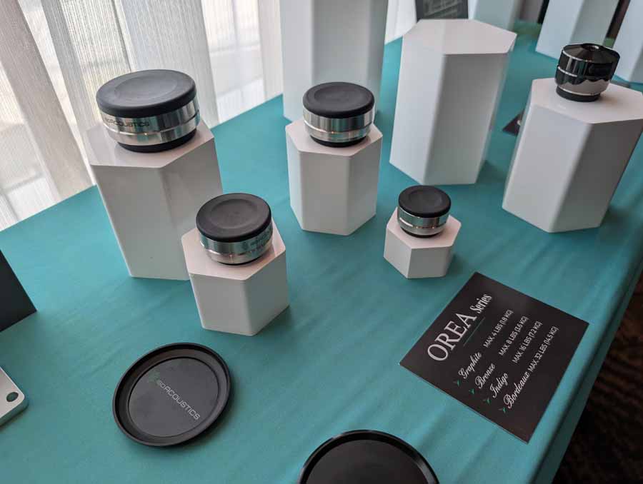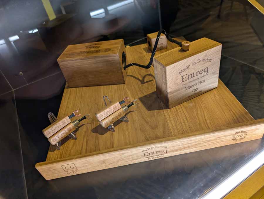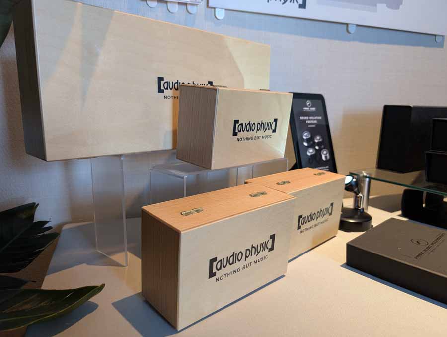 Isoacoustics had their usual range of excellent isolation products, alongside their A/B demo of the Gaia Neo feet – using two pairs of KEF R7 Meta speakers, one with Gaia Neo feet, the other using standard KEF feet. It’s a very effective demo, and the sound is noticeably more controlled and focussed with the Isoacoustics feet – they were using a Cambridge Audio EXN100 and EXA100 streamer / integrated amp stack to drive the speakers.