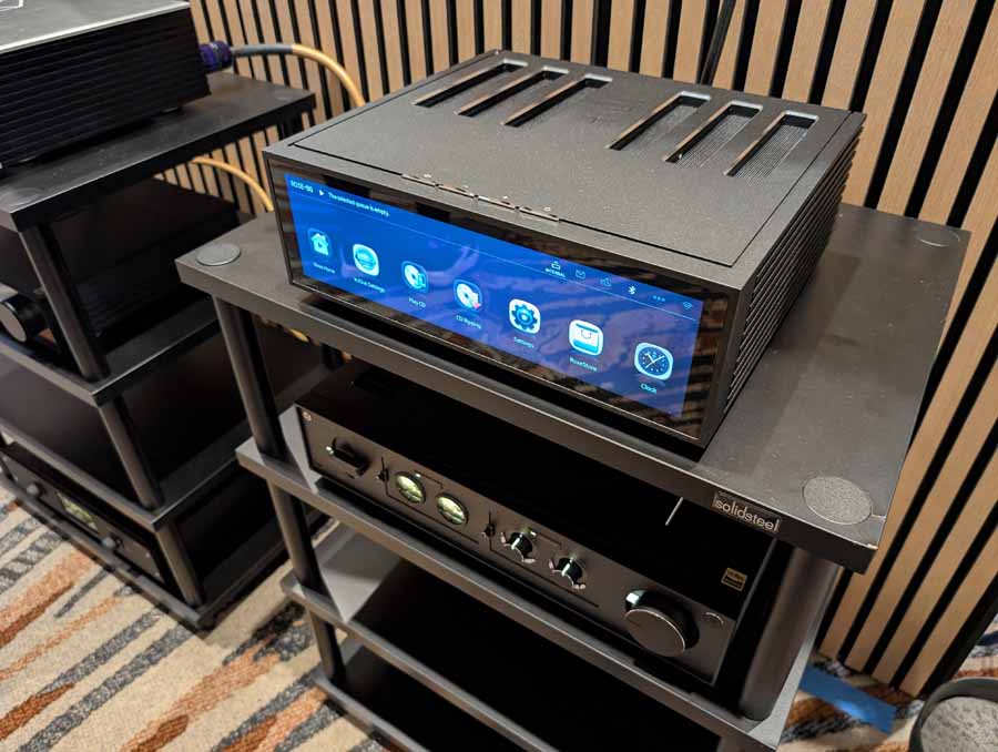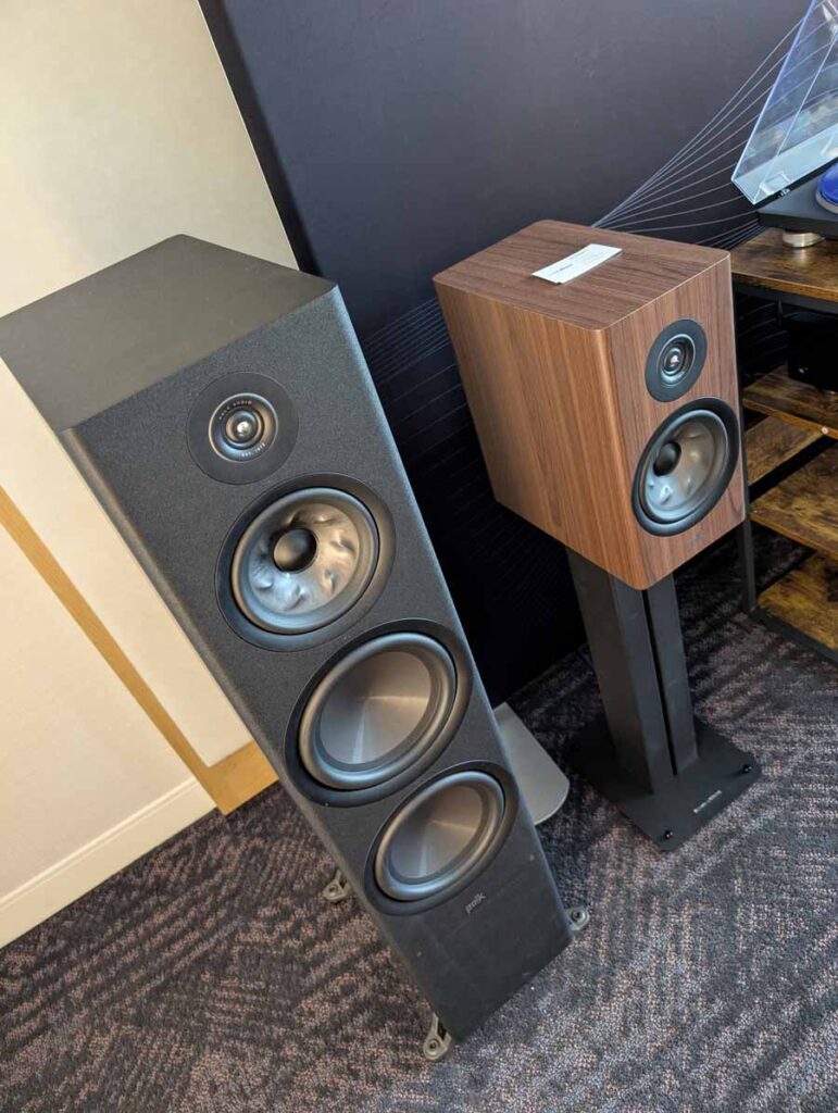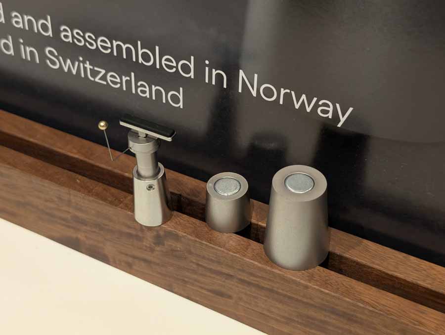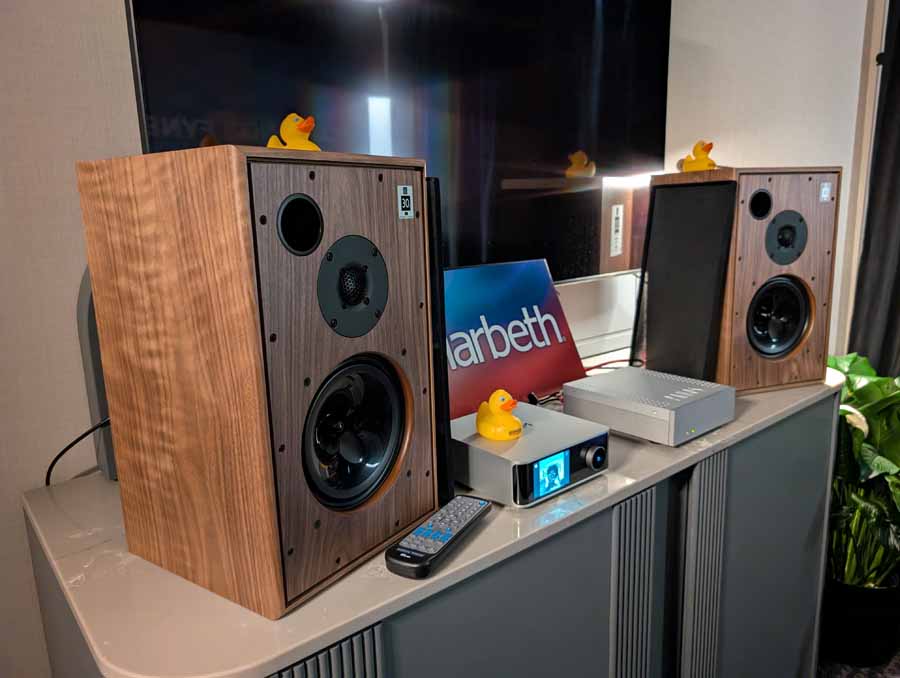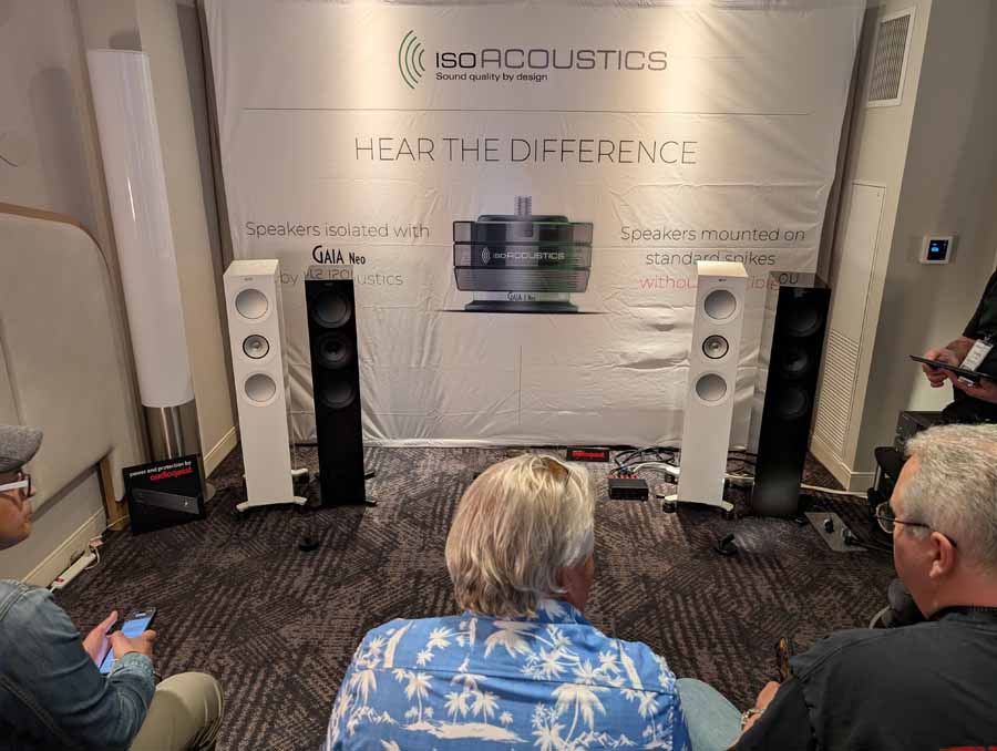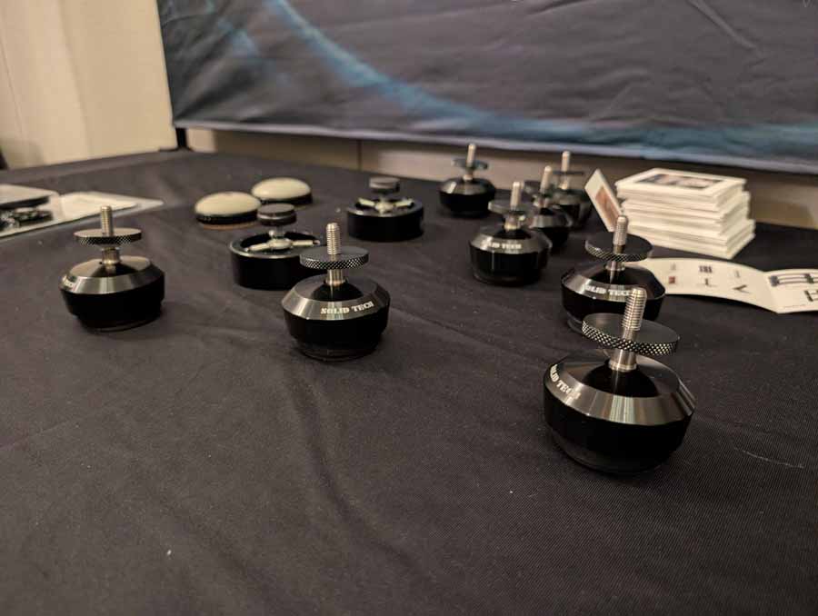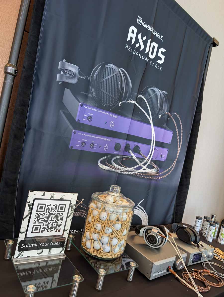 Isoacoustics had their usual range of excellent isolation products, alongside their A/B demo of the Gaia Neo feet – using two pairs of KEF R7 Meta speakers, one with Gaia Neo feet, the other using standard KEF feet. It’s a very effective demo, and the sound is noticeably more controlled and focussed with the Isoacoustics feet – they were using a Cambridge Audio EXN100 and EXA100 streamer / integrated amp stack to drive the speakers.
