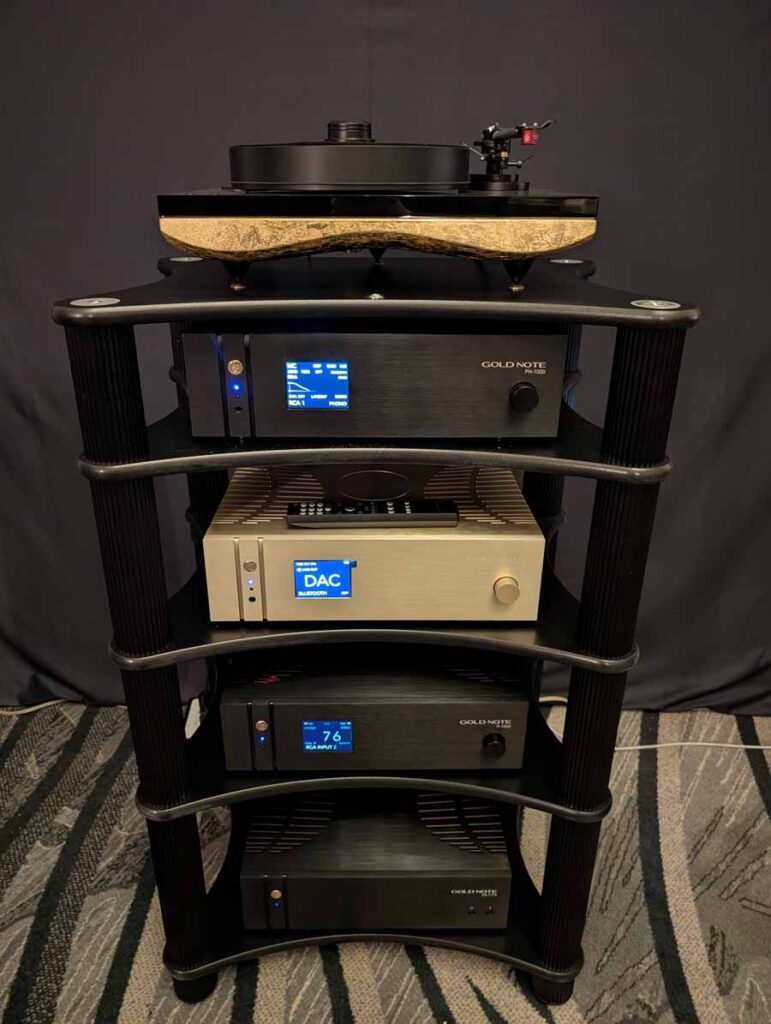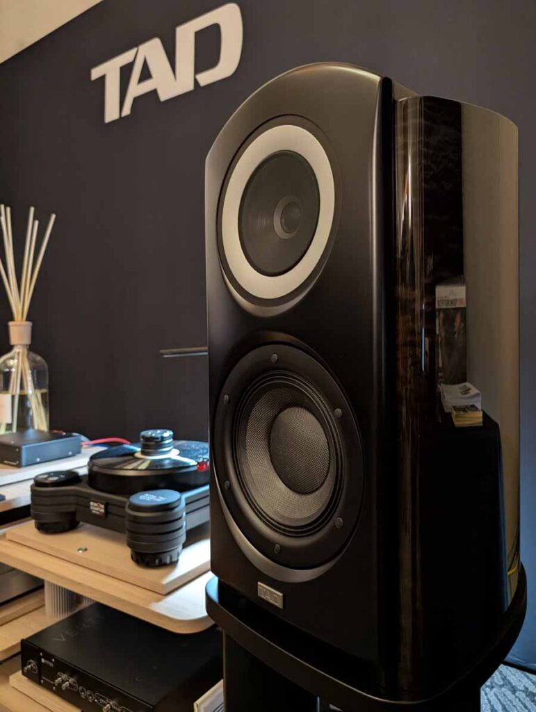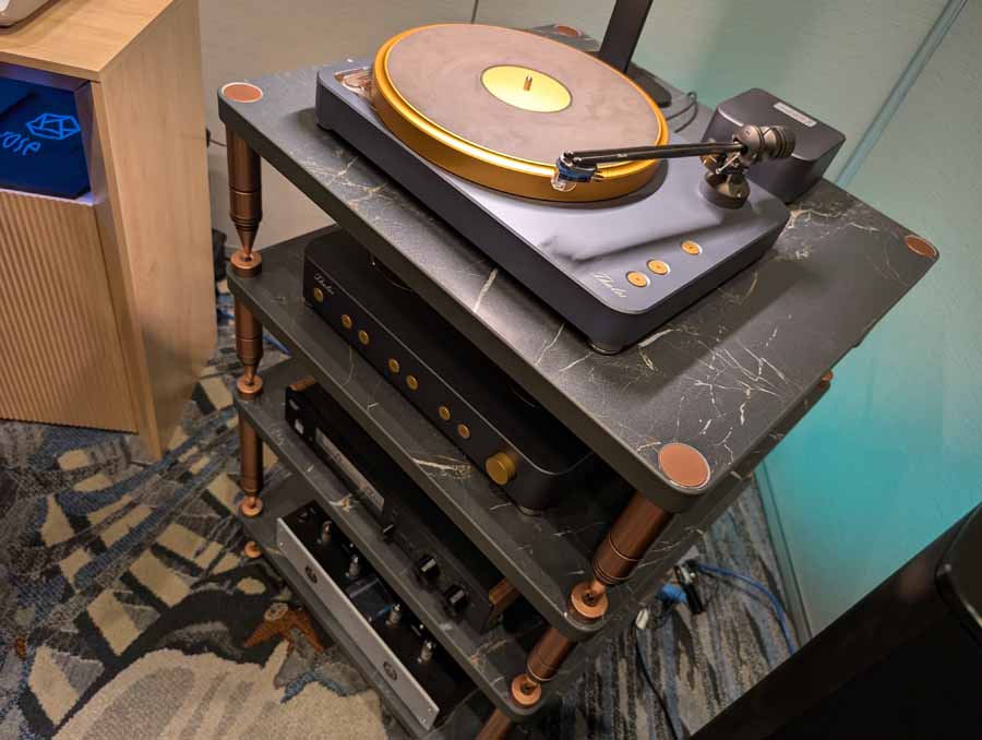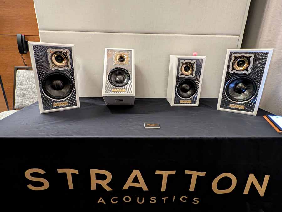 Rutherford Audio had a TAD system playing, with a Vertere Calon phonostage, Oladra streamer/server, and Acoustic Signature turntable. Around the room they had loads on display, including more from Acoustic Signature, Gold Note, Ikigai cables, Solid Tech isolation products, and lastly a little corner dedicated to Stratton Acoustics. It was a pleasure seeing David at the show, these speakers are quite special and we were lucky enough to have a listen to them a few weeks ago at Audio Show Deluxe. They sound huge for their size and it’s great to see the brand showcasing at AXPONA.