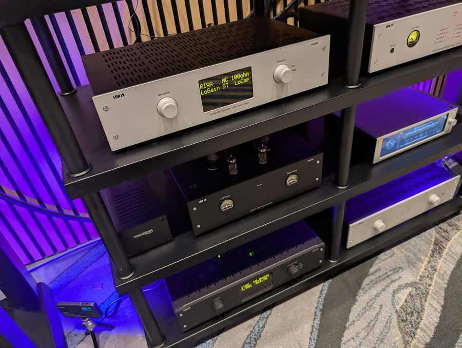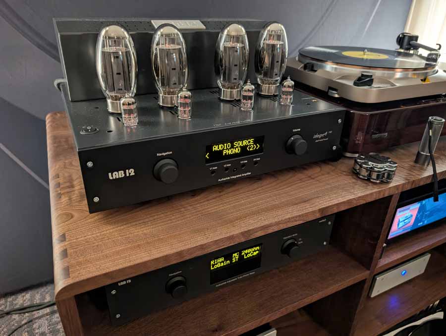 These speakers were paired with Lab 12 electronics including the Integre4 Mk2 tube audiophile integrated amplifier and Melto2 tube phono stage. For the analogue source, they featured the Thorens 124 DD Exclusive turntable with an EMT Tondose Exclusive phono cartridge, alongside the HiFi Rose RS151 high performance network streamer for digital playback. They also utilized a Drake Woodworking Crescendo audio cabinet for equipment support.