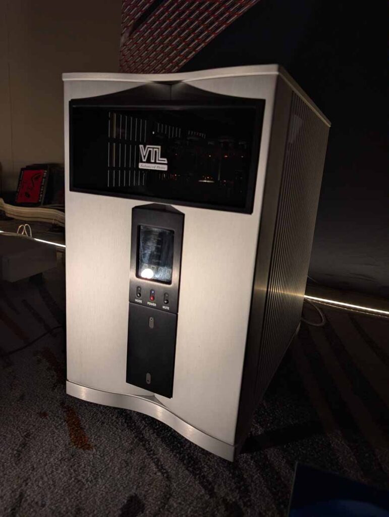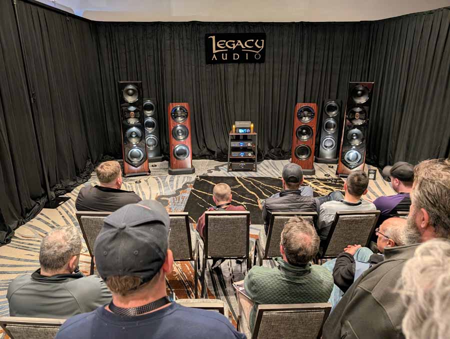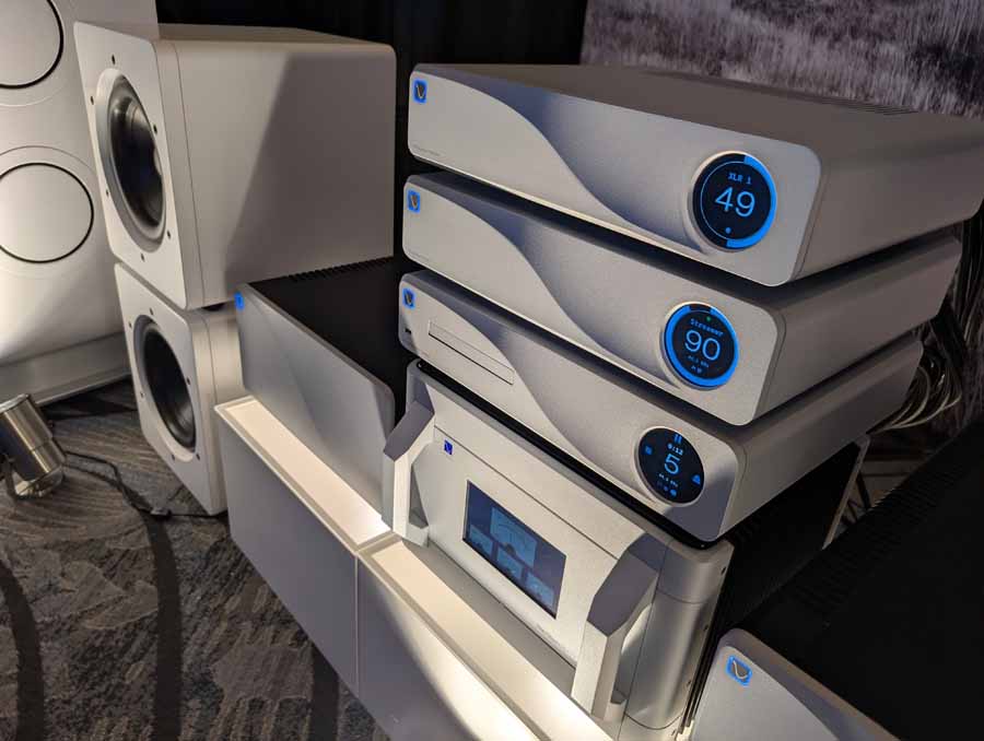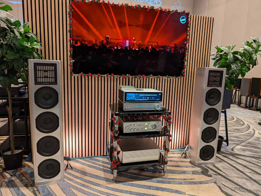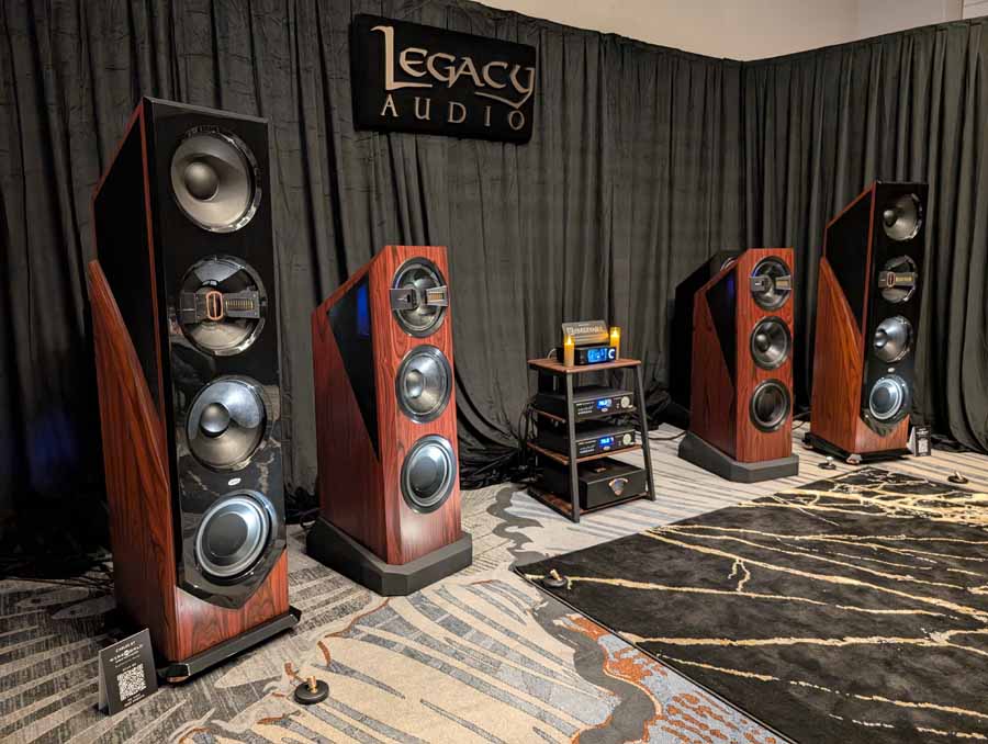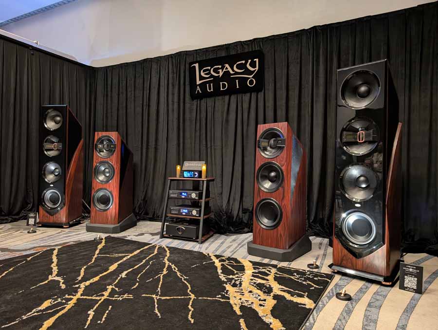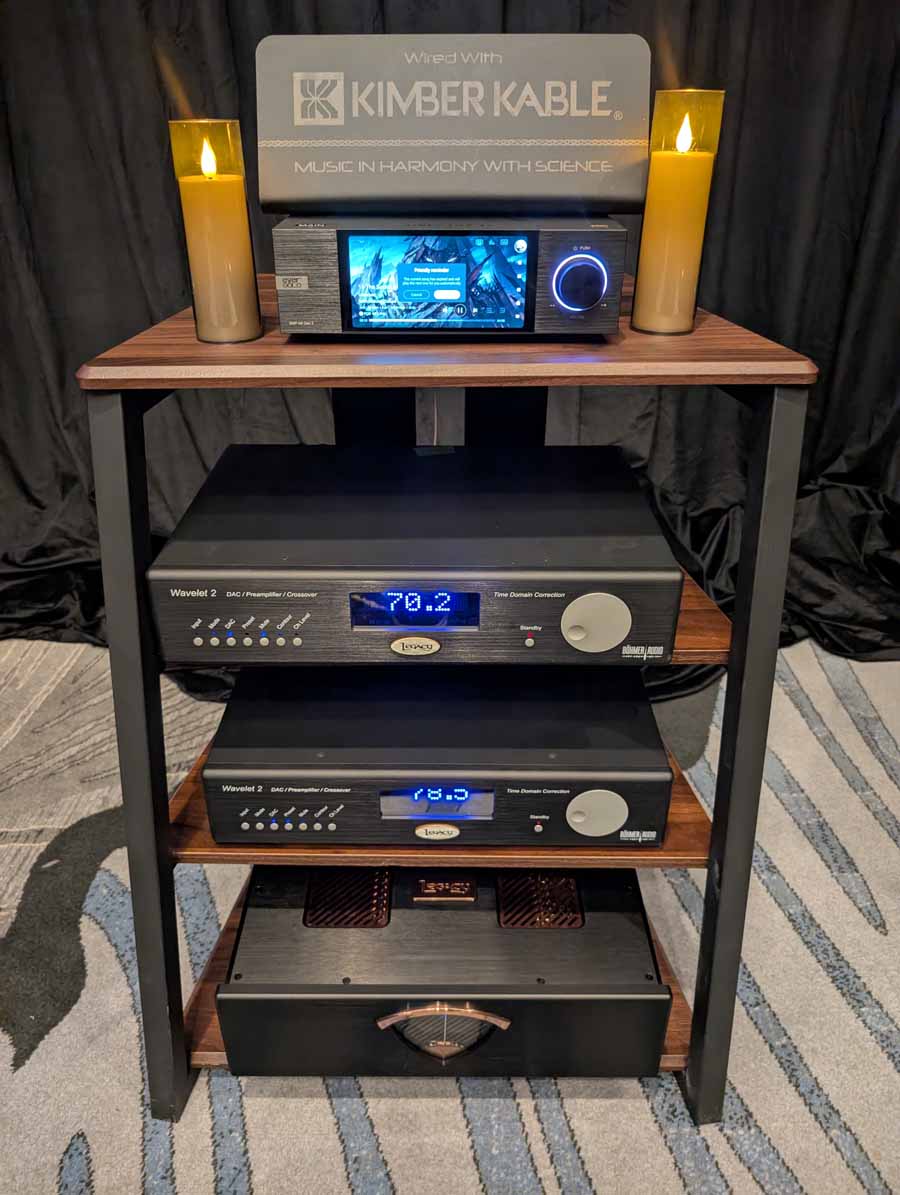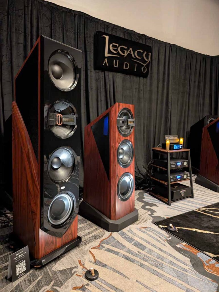 Legacy Audio showcased their flagship Valor system in the Utopia A ballroom, featuring the Wavelet II Preamp/Processor and i·V Ultra power amplifiers. The system utilized the internal 2,750 watts of the Valor towers alongside external i·V amplification to drive the sophisticated 14-driver array. On the analogue side, they featured a turntable for demos, while the digital front end was handled by the Wavelet II’s internal DAC and DSP suite. They also showcased the Aeris and Focus XD systems in the same space, demonstrating the versatility of their room correction technology.