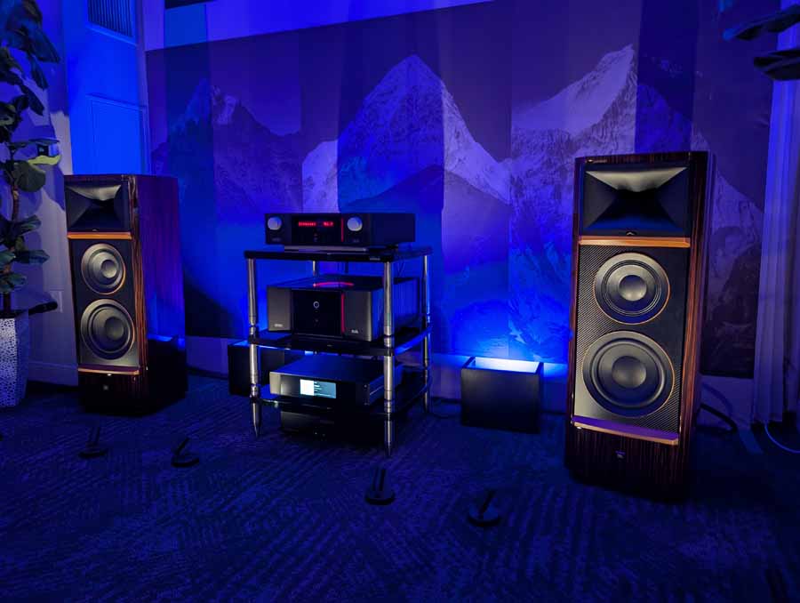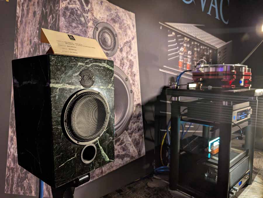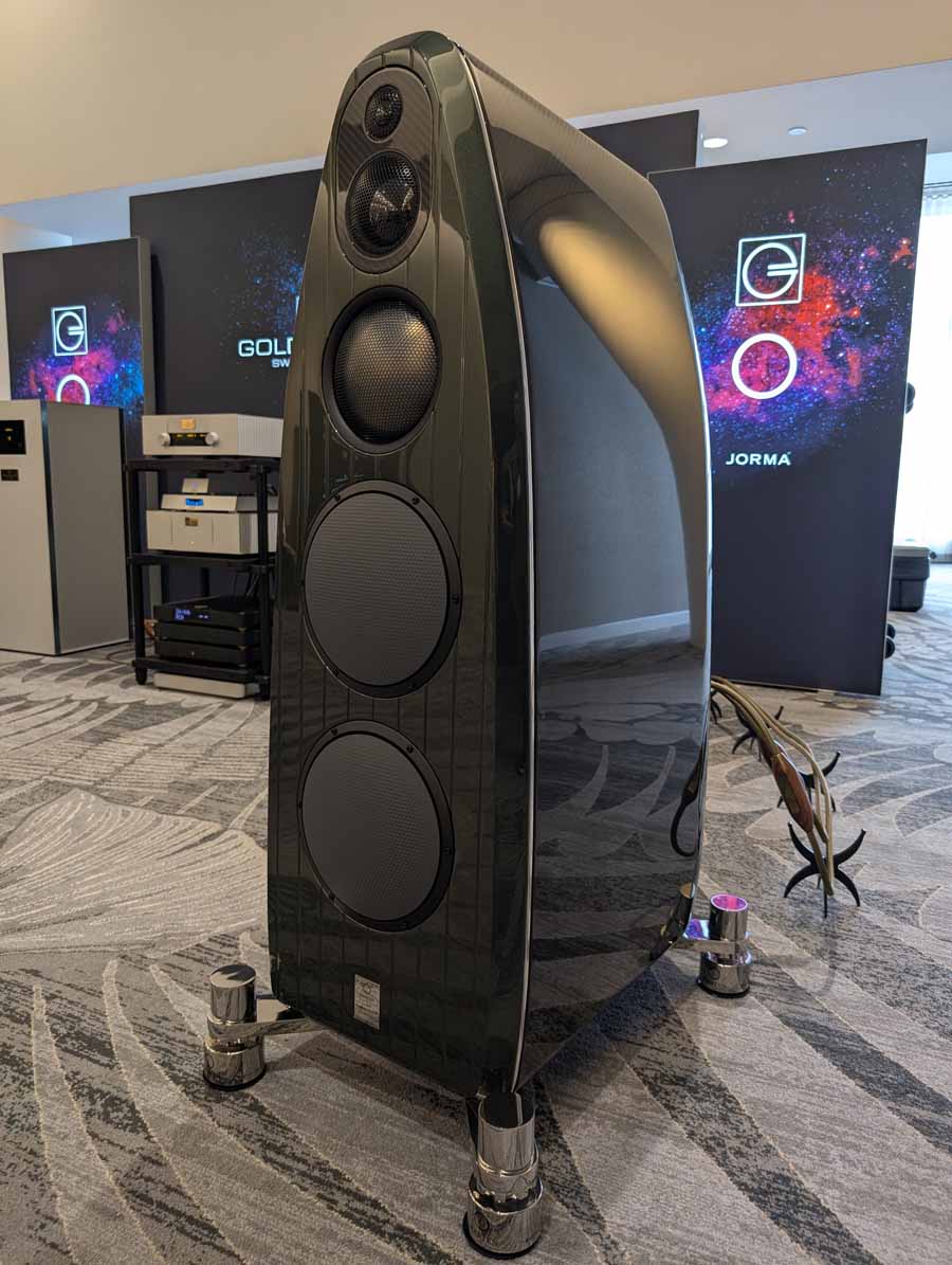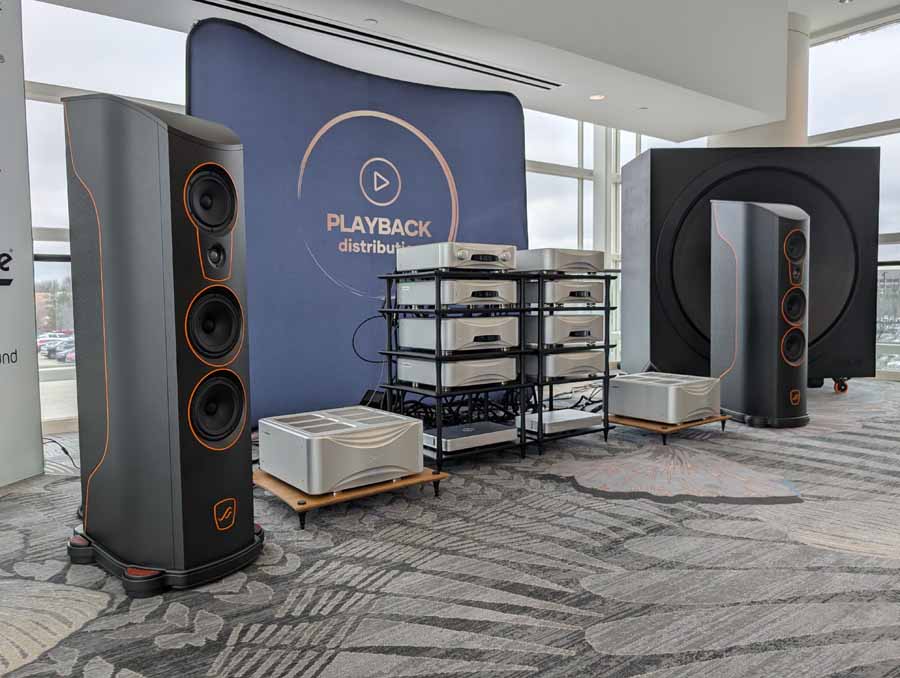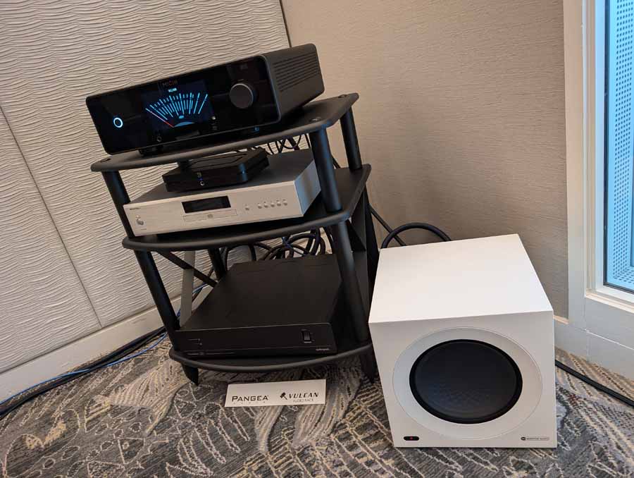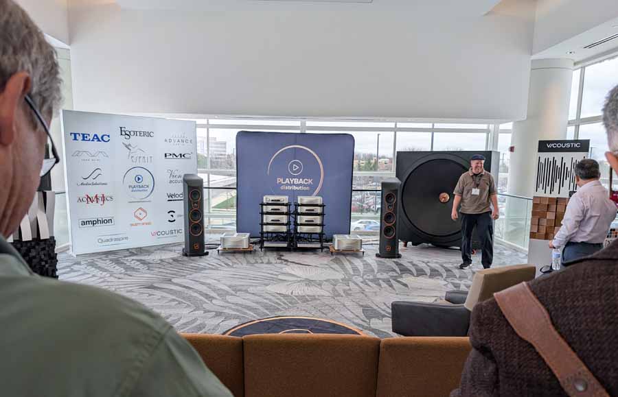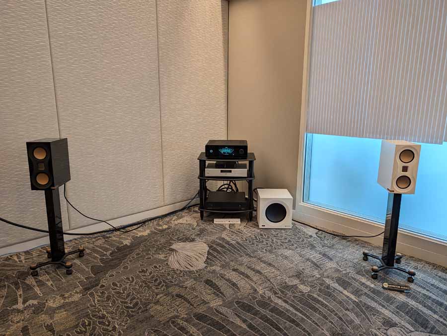 Nirvana C had the Titan speakers (a USA debut), paired with four flagship 888 Monoblocks from MOON by Simaudio and additional electronics from MOON and Taiko Audio. They also had an AMG turntable, alongside cables by AudioQuest and equipment supports from Hifistay. Big sound as expected, with impressive clarity and punch.
