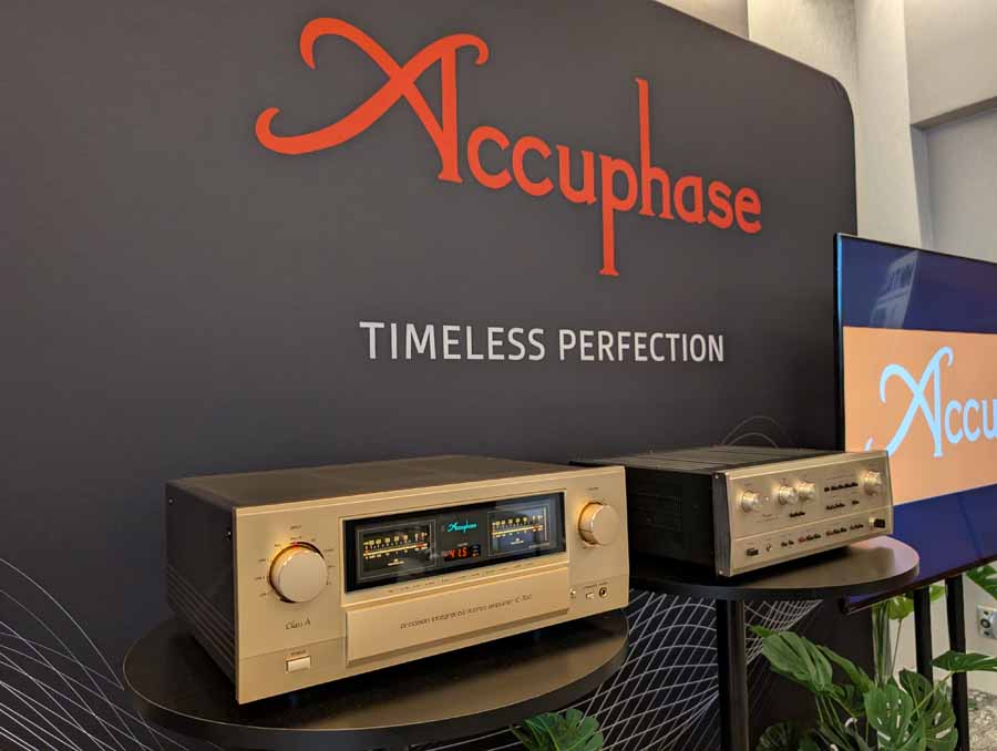 In the Imagination room, Axiss had a full Accuphase setup, driving a pair of Gauder Akustik speakers, with Tara Labs cabling throughout. They were using 2 x A-300 power amps per speaker, Trans Rotor Jr turntable, DP-770 SACD player, and C-3900S pre-amplifier.