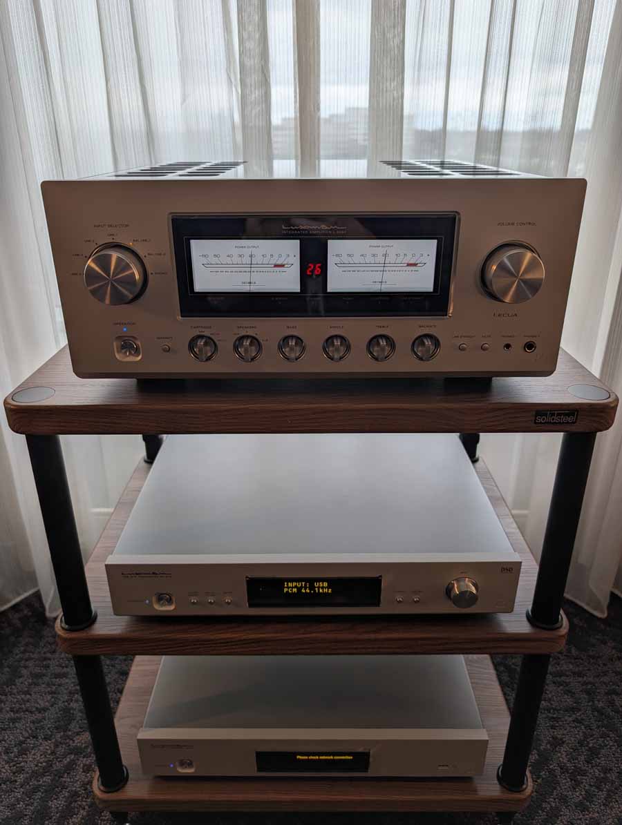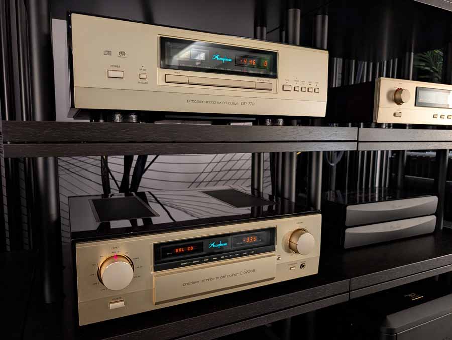 Driving them you had the Accuphase E-4000 integrated amplifier (fitted with the AD-60 phono module). The system featured a Technics SL-1300G turntable with a Dynavector 10XA-L cartridge for analogue playback, alongside a Nagra Compact Player with its matching PSU and VFS for digital. The entire setup was housed on a BOX Furniture MS4M rack and used AudioQuest cabling and PowerQuest mains conditioning.
