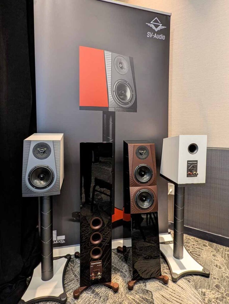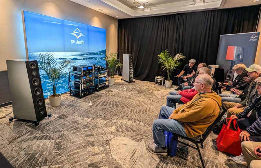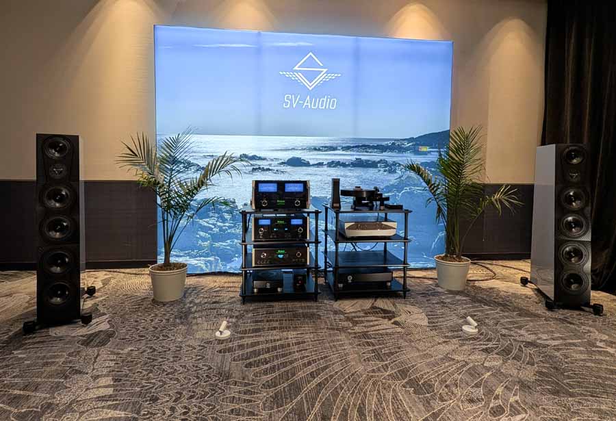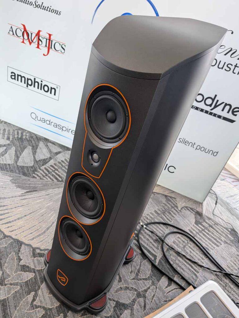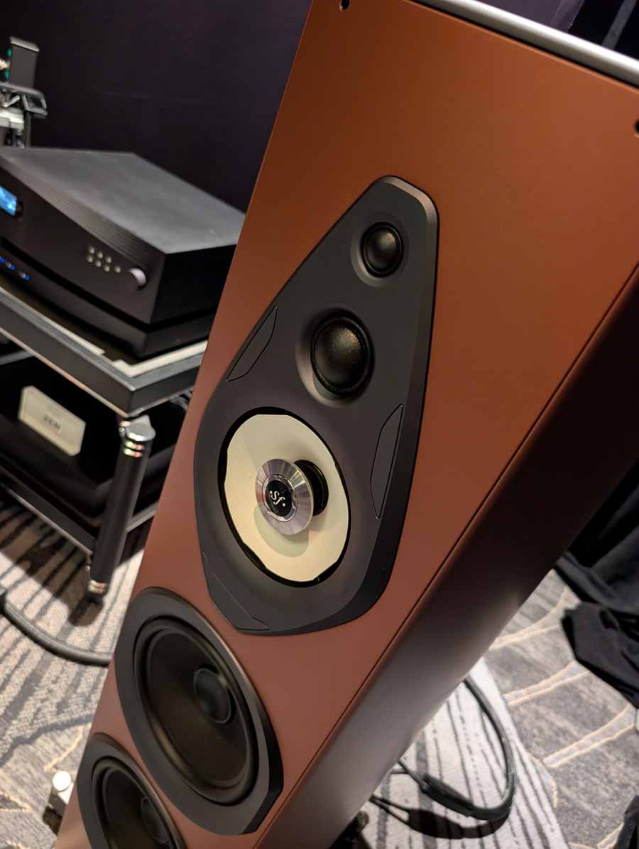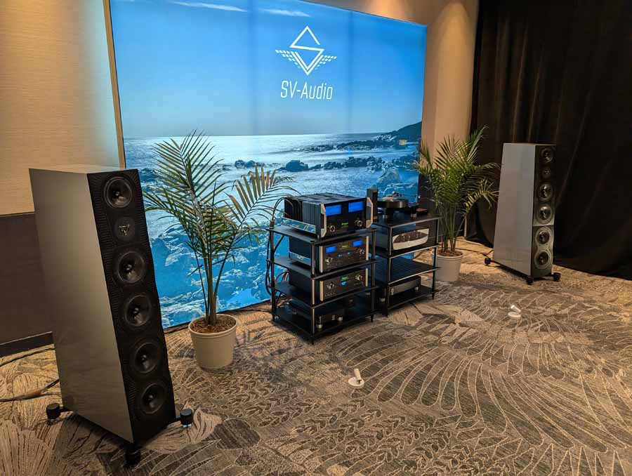 Fenja, paired with McIntosh – the usual high standard from SV Audio, excellent drive, detail, and control, whilst still sounding effortless and articulate. The bass comes from nowhere, and hits hard when needed whilst always remaining faithful to the recording – US debut for the brand and an excellent sounding room.