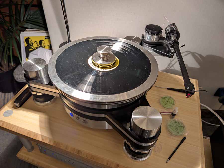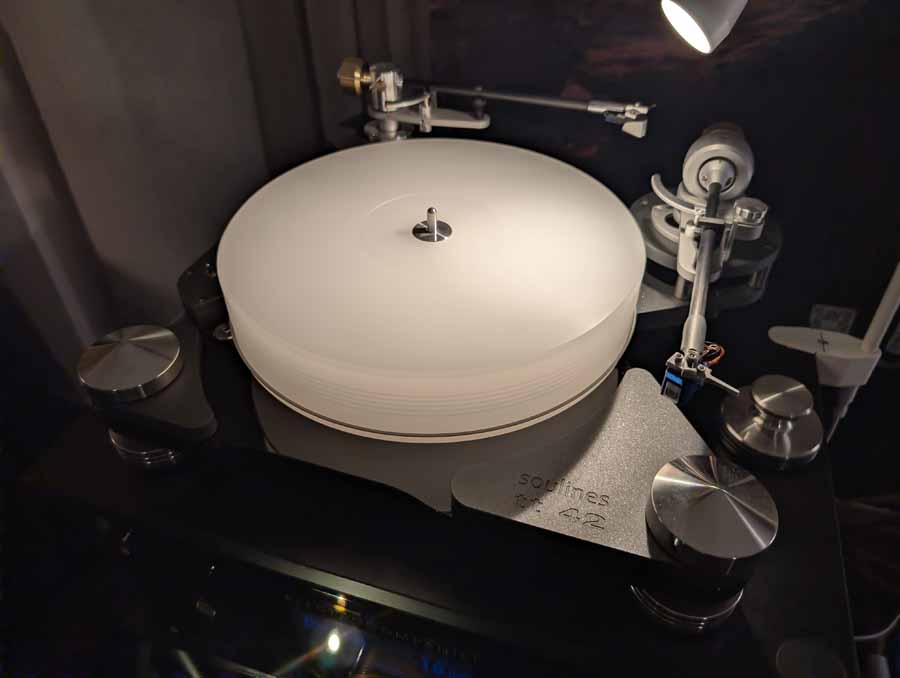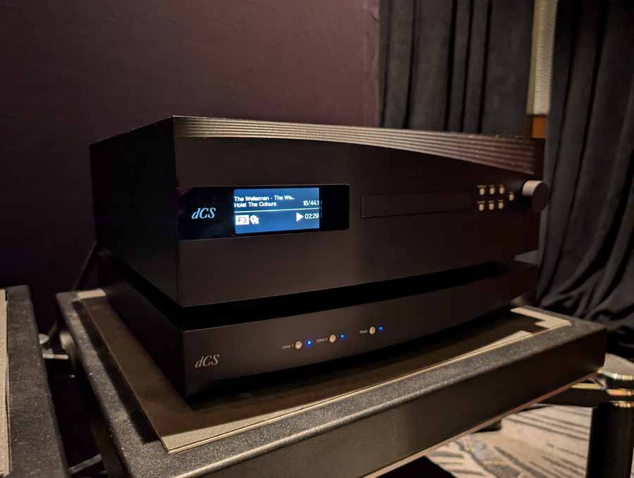 The analogue source was a Döhmann Helix One Mk III turntable featuring vacuum hold-down, equipped with a Wilson Benesch Gravitas Ti tonearm and Tessellate Diamond MC cartridge, alongside a second SUPATRAC Nighthaawk 12” tonearm with a DS Audio Grand Master EX Cartridge and DS Audio EQ. The system had Transparent Magnum Opus cabling and was sat on a Critical Mass Systems Olympus Ultra rack. The Wilson sounded great with more impactful music playing, huge scale, impact, and depth.