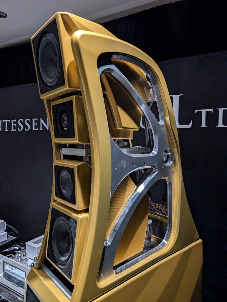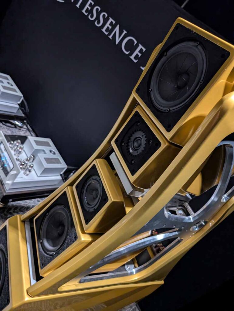 Outside of the rooms, Quintessence had a range of products on display, including Fyne Audio, Clear Audio, Innuos, Dynaudio, and Ø Audio – where they were showing off some of the internal components of their new Ymir speakers.