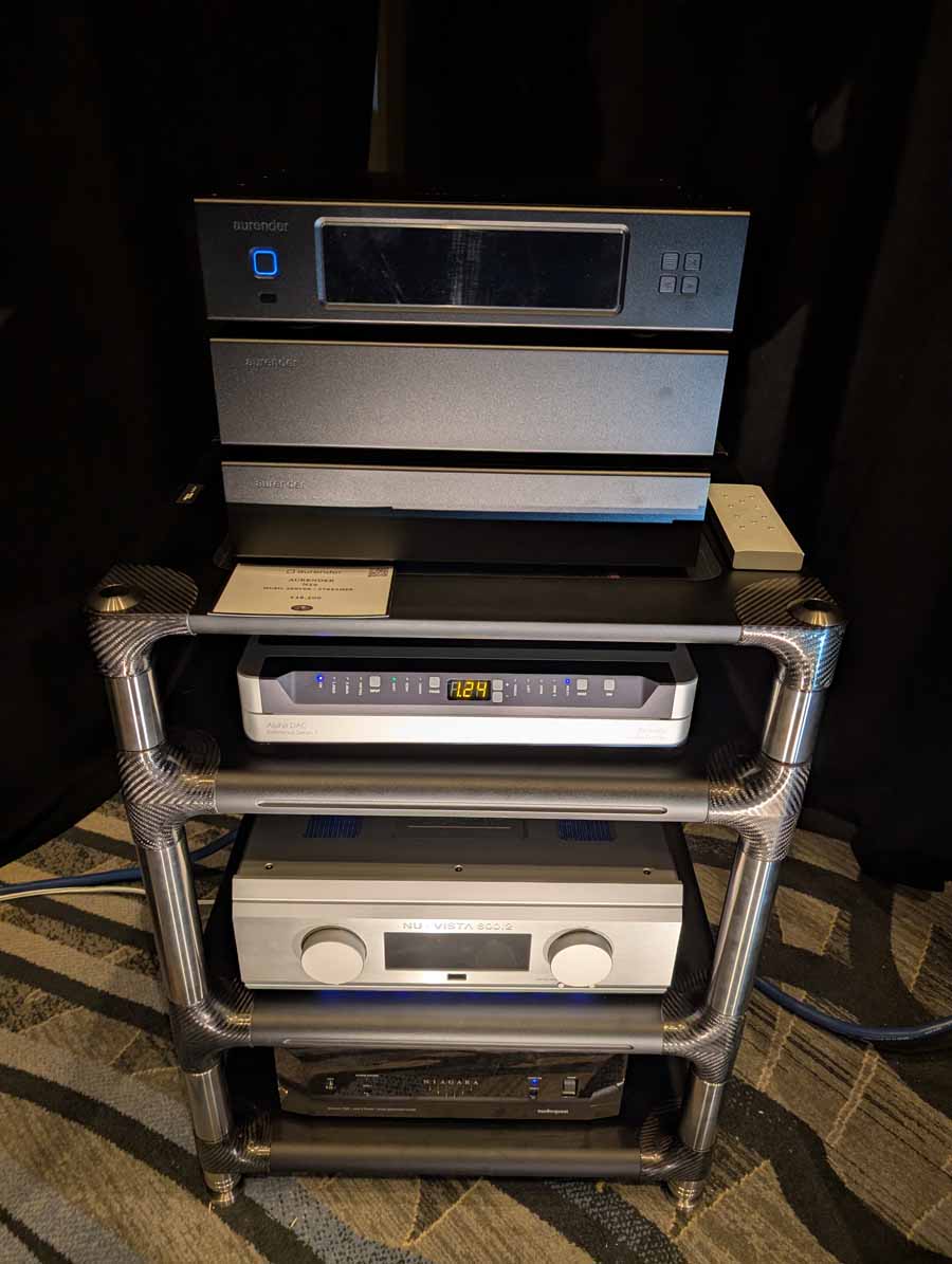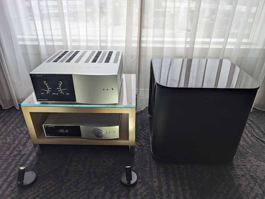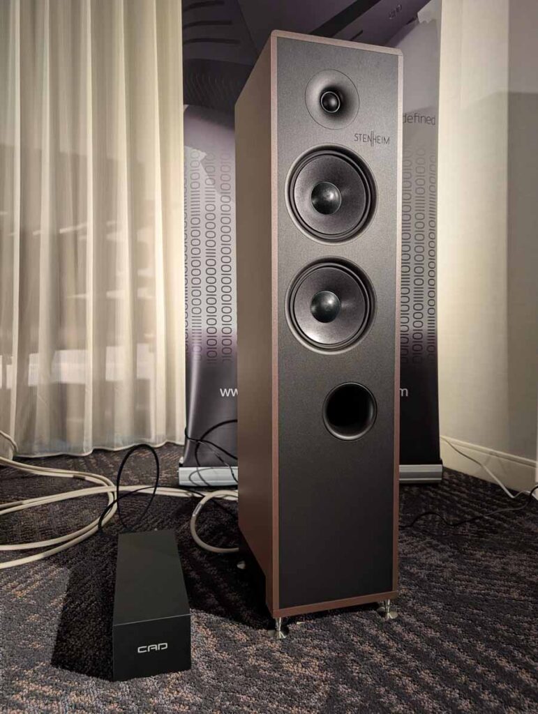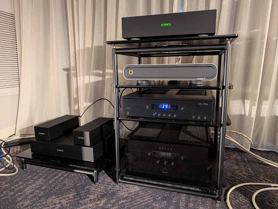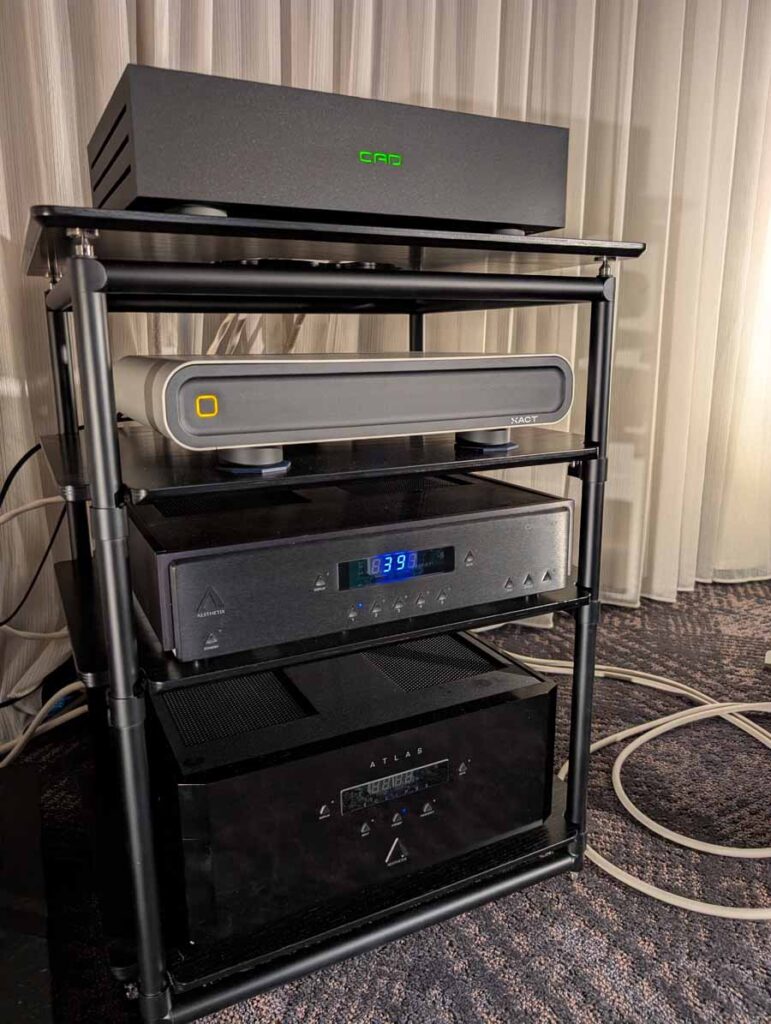 Computer Audio Design and Aesthetix were showcasing a high-end system in Room 364, featuring the Stenheim Alumine Two.Five floorstanding speakers. The setup was powered by an Aesthetix Calypso All-tube Line Stage and an Atlas Eclipse Stereo Power Amplifier, delivering a hybrid valve and solid-state output.