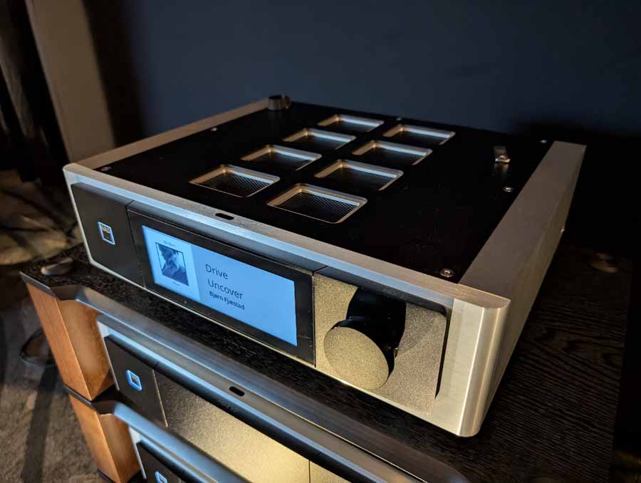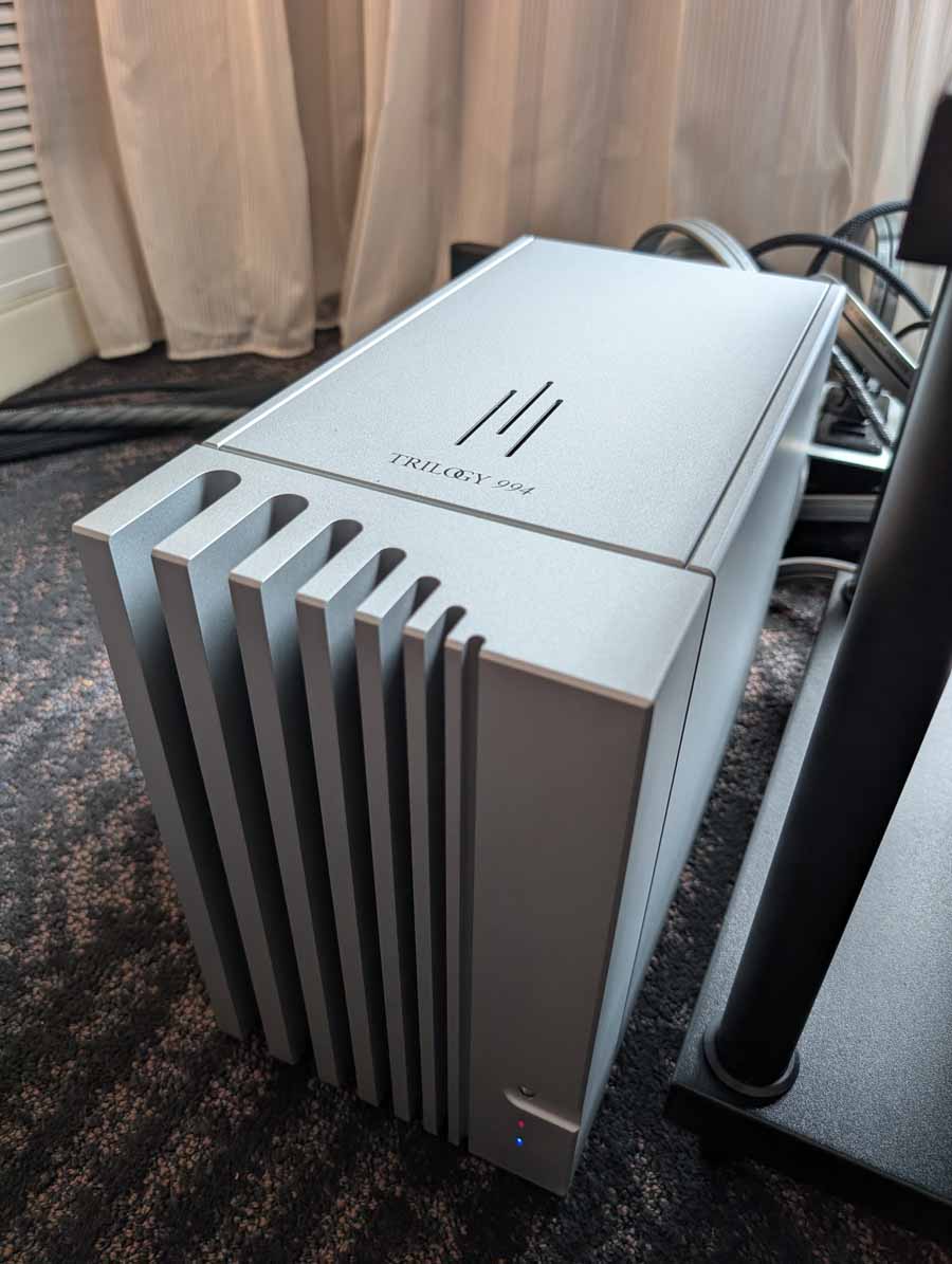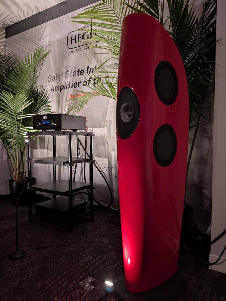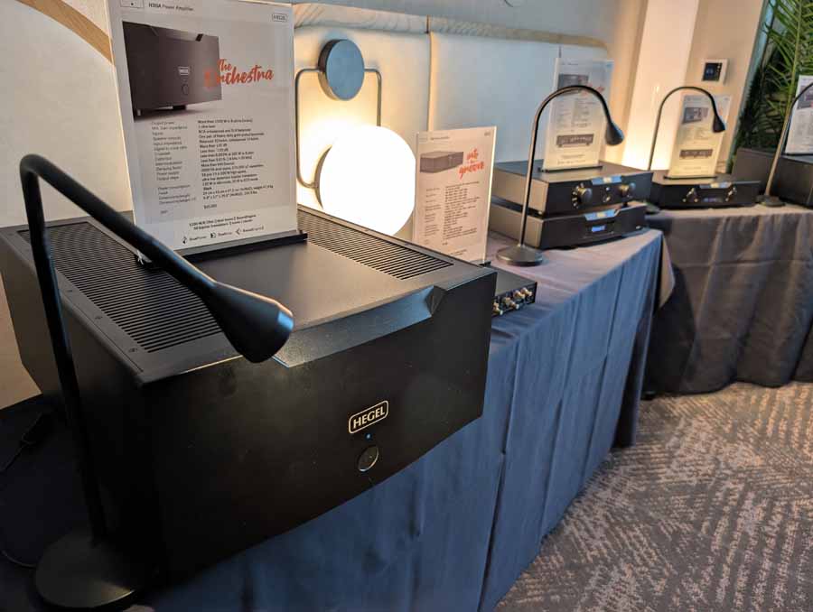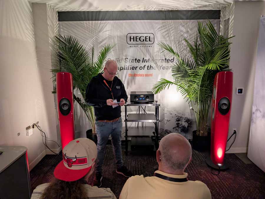 In their demo room they had their flagship H600 integrated amplifier driving the KEF Blade Two Meta loudspeakers. The setup was wired throughout with AudioQuest cabling, and it was a powerful yet detailed performance, with the Hegel keeping excellent control over the KEF speakers.