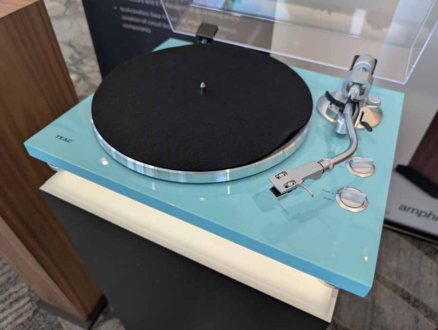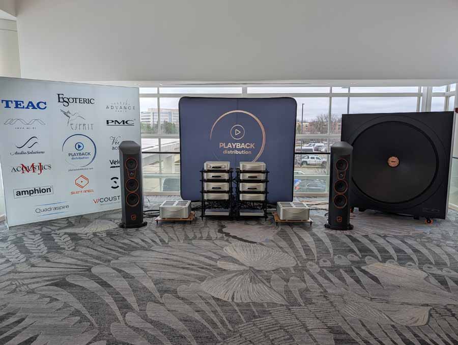 Playback Distribution had the Esoteric Grandioso system, paired with Audio Solutions Vantage M speakers and a Deus Audio Machines Invicta 60” infrasonic subwoofer. They also had the new TEAC TN-400BT-X in Turquoise finish, alongside the Silent Pound Bloom in Alcantara finish (a world debut).