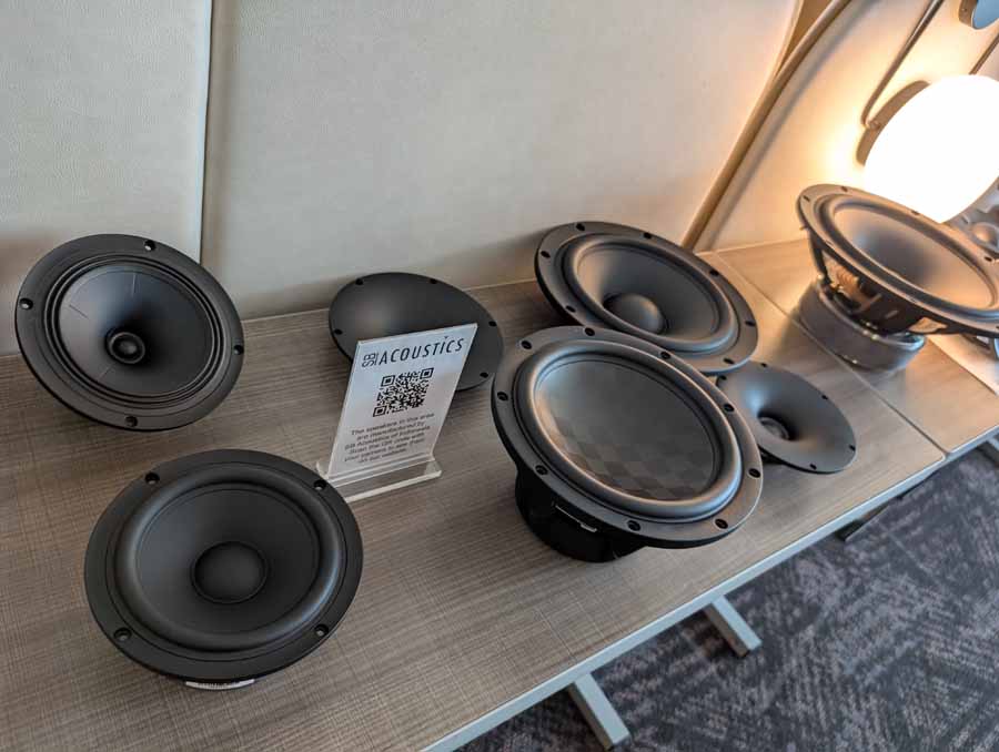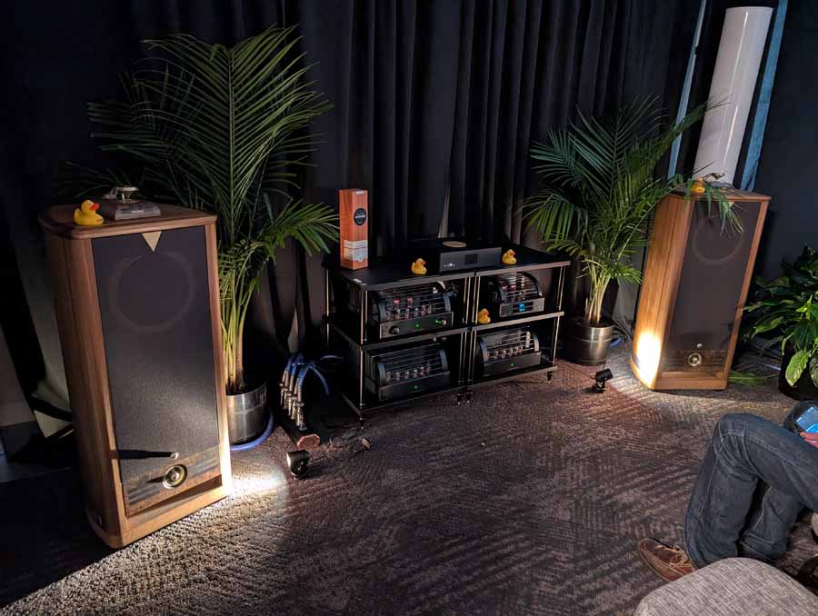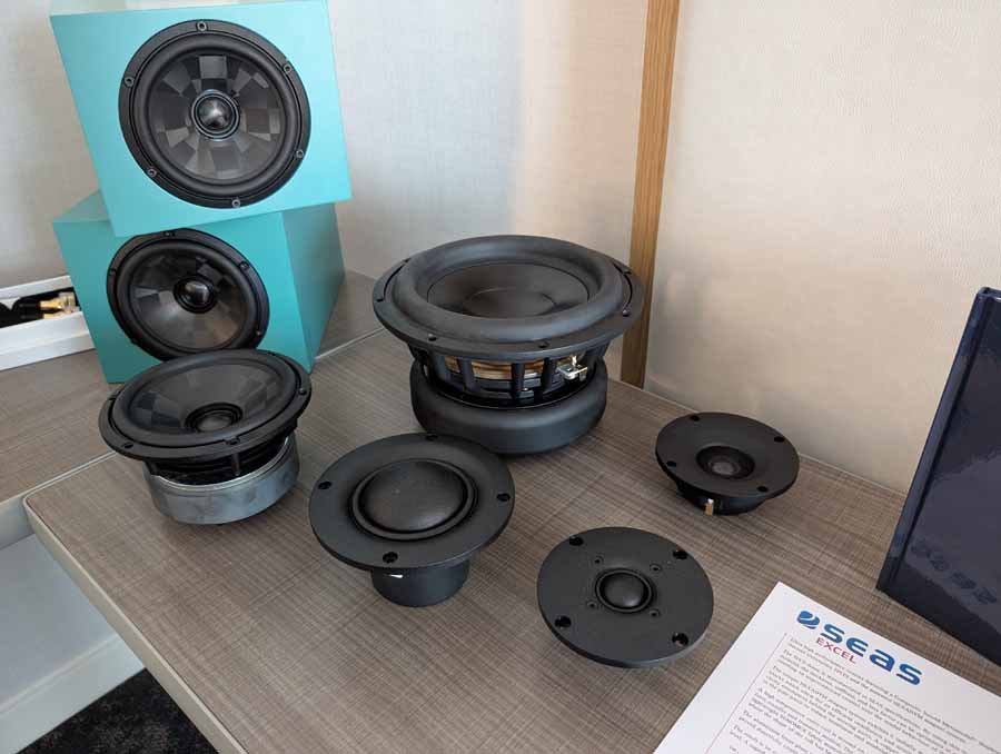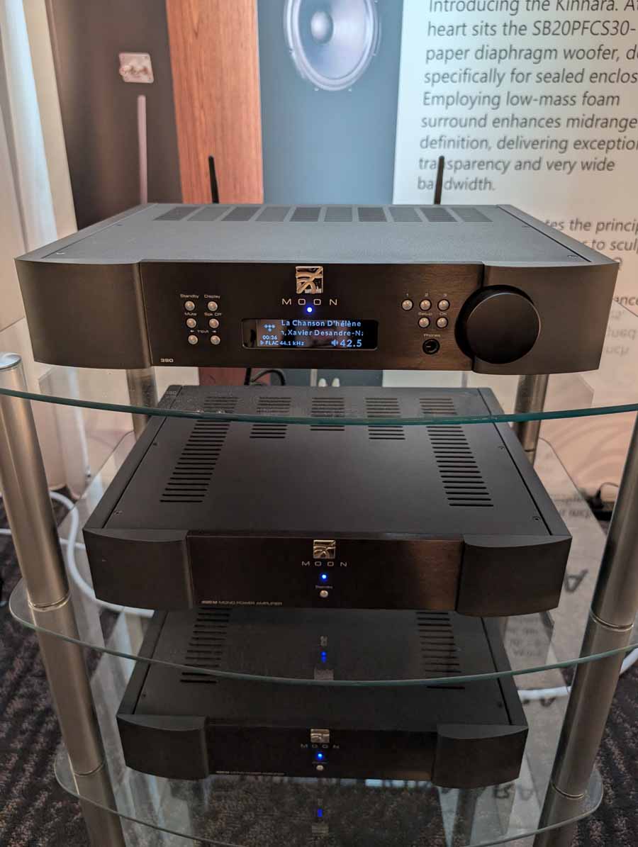 Lots of SB acoustics drivers in this room, alongside a couple of pairs of speakers using their drivers, powered by Moon audio electronics.