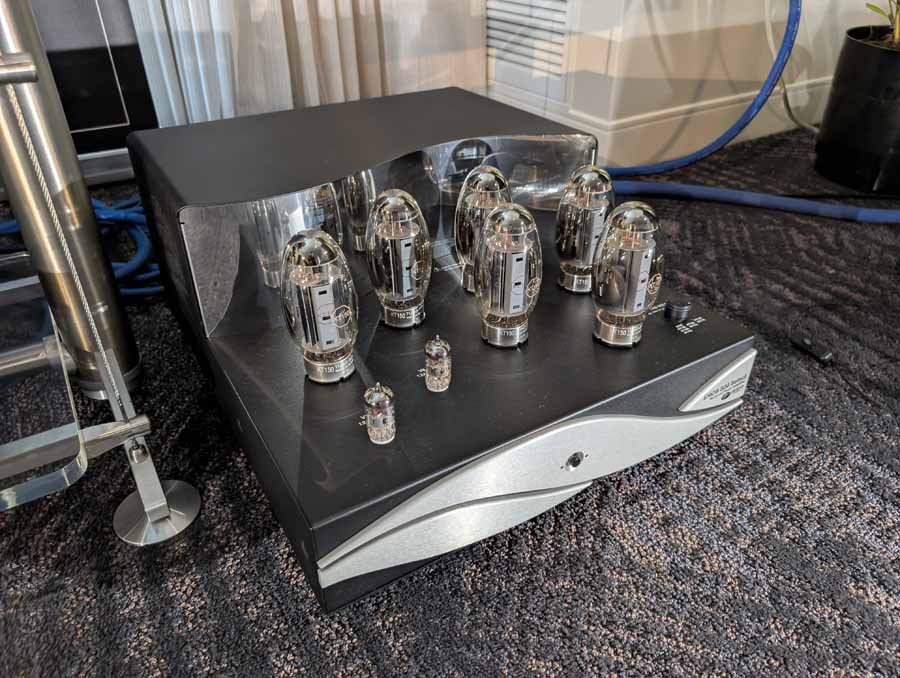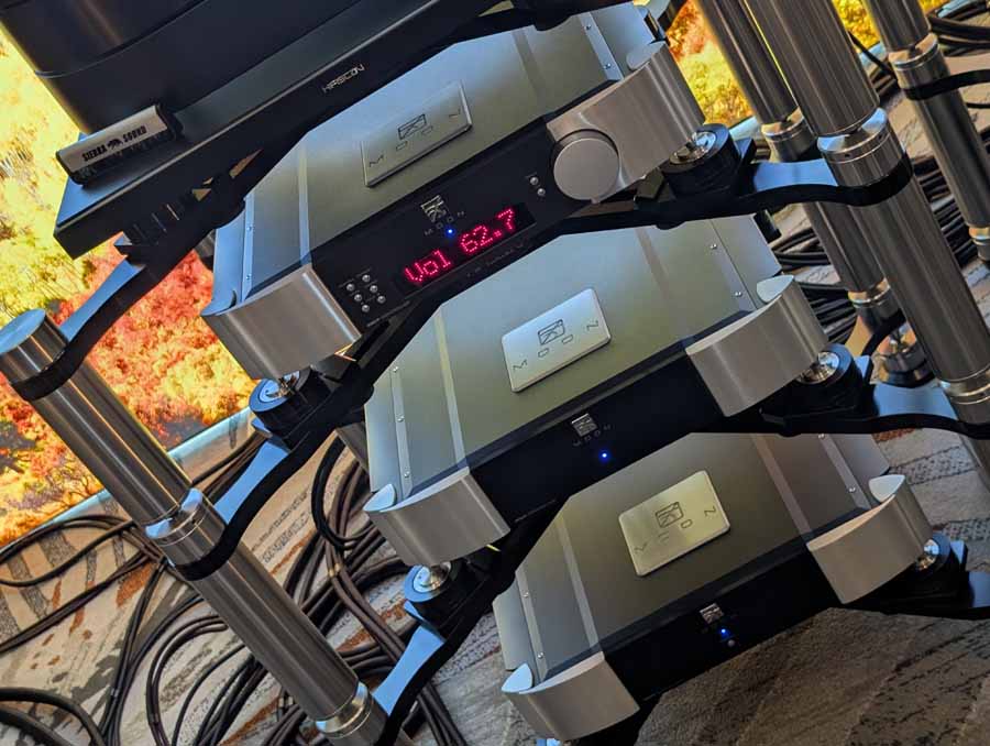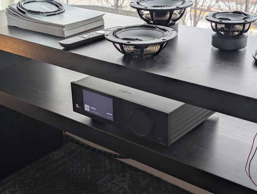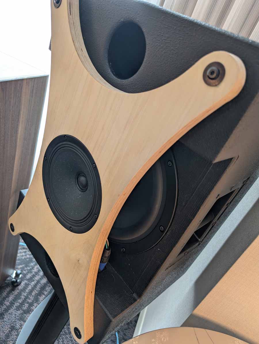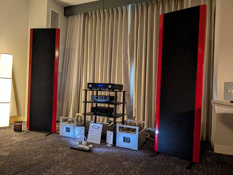 Lots of SB acoustics drivers in this room, alongside a couple of pairs of speakers using their drivers, powered by Moon audio electronics.