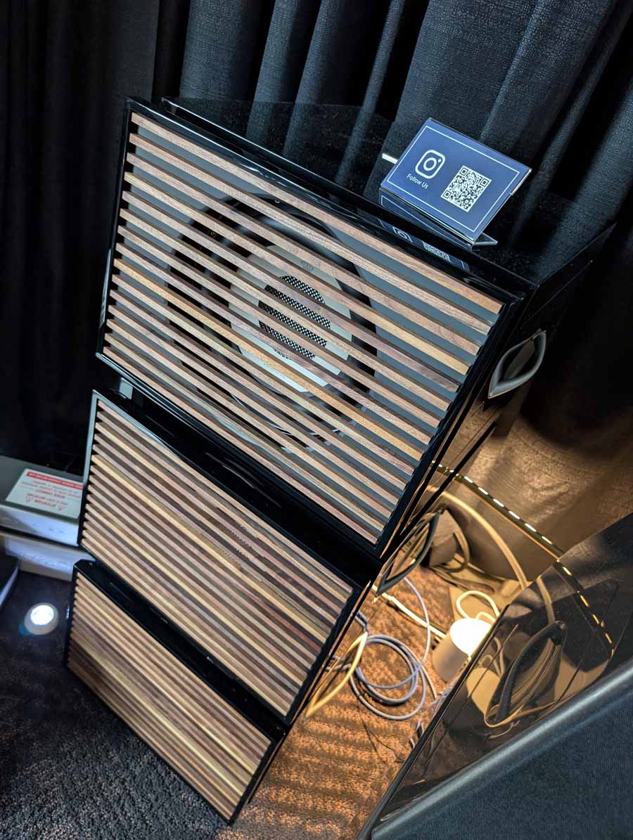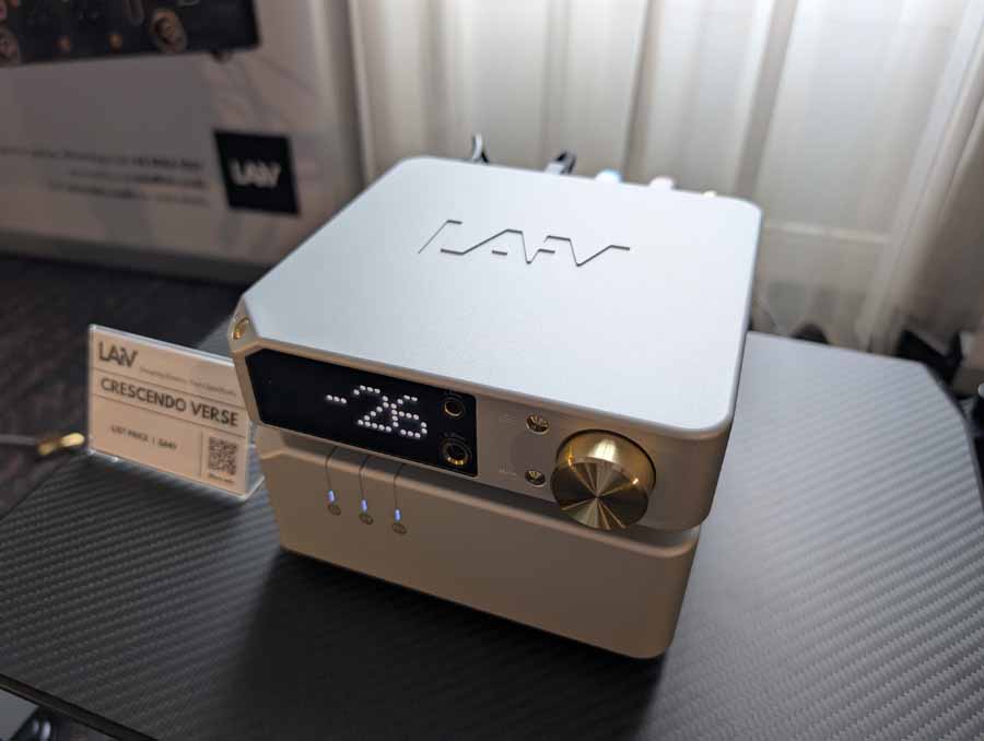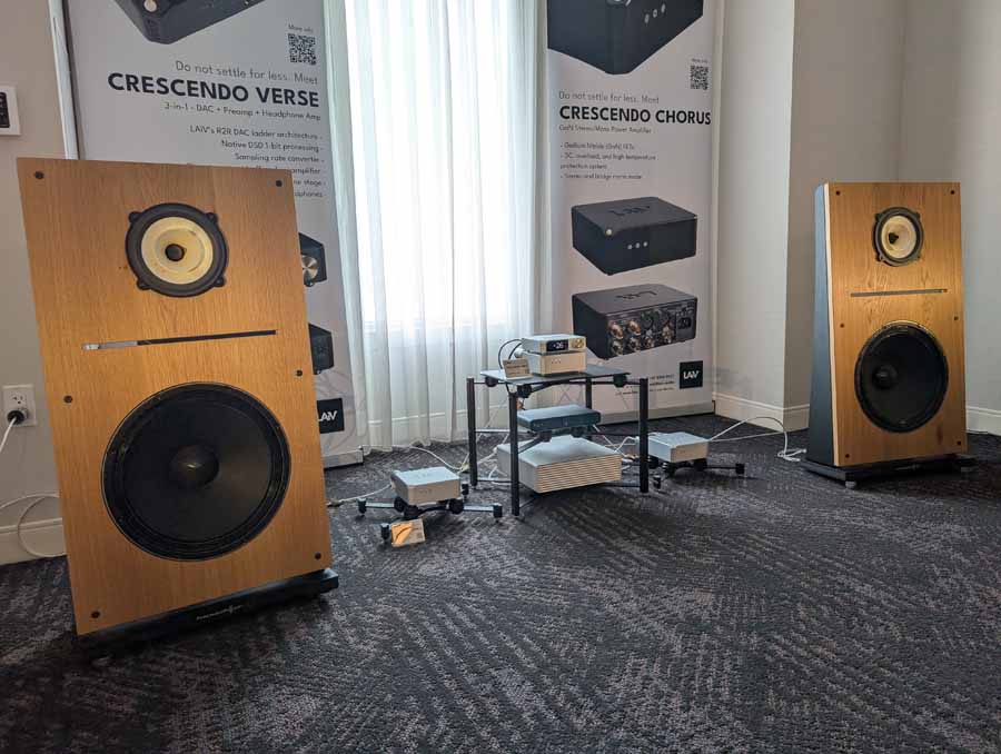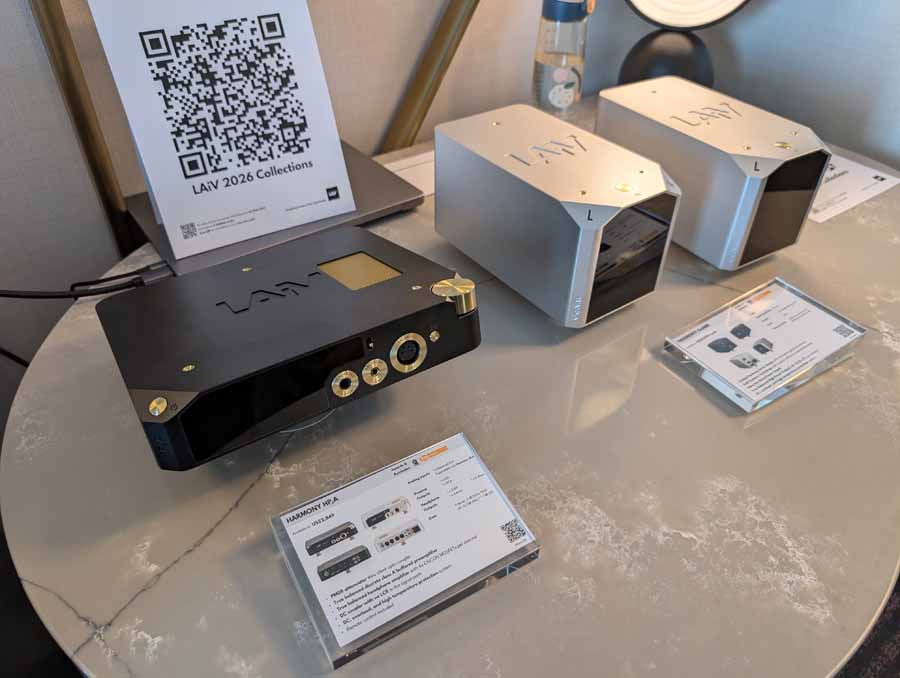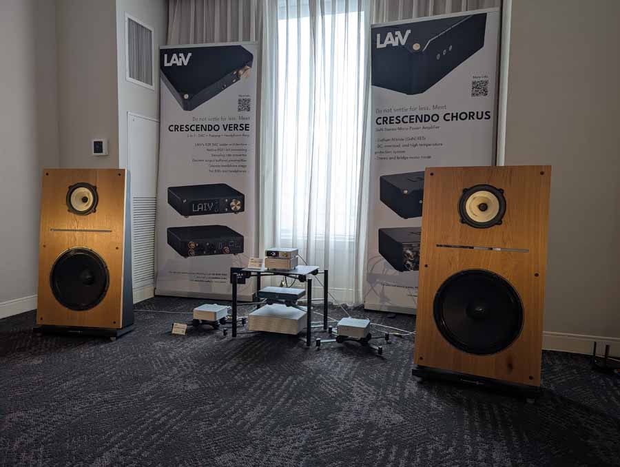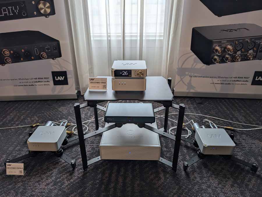 LAiV make some cool looking kit, and have spent some time expanding their range over the last year or so. In the demo system they had their Crescendo Verse and Crescendo Chorus, paired with a Volumio Rivo+ streamer, Vinshine mains conditioner, and Pure Audio Project open-baffle speakers.