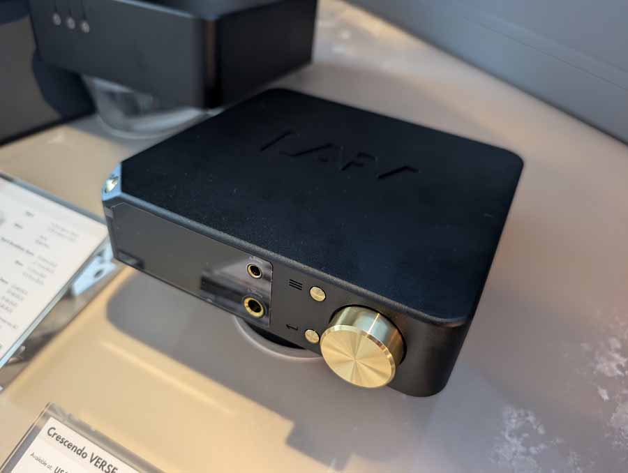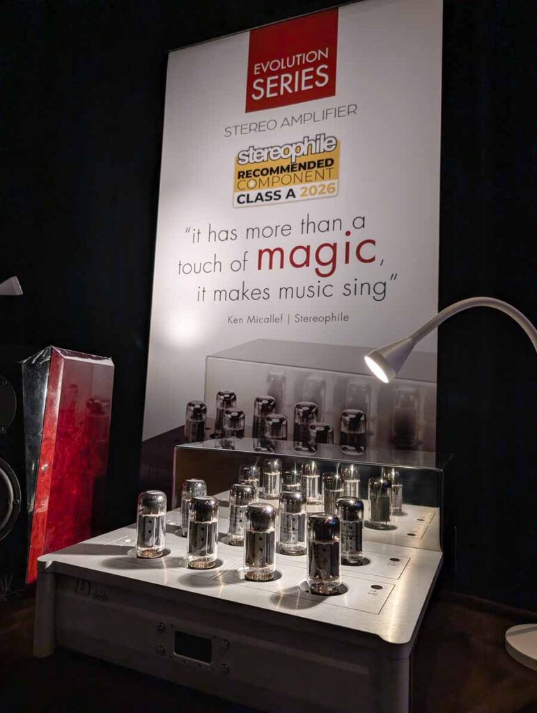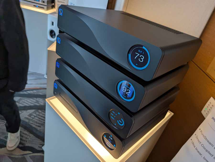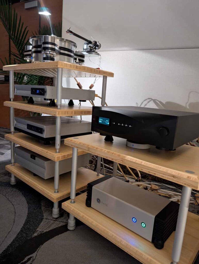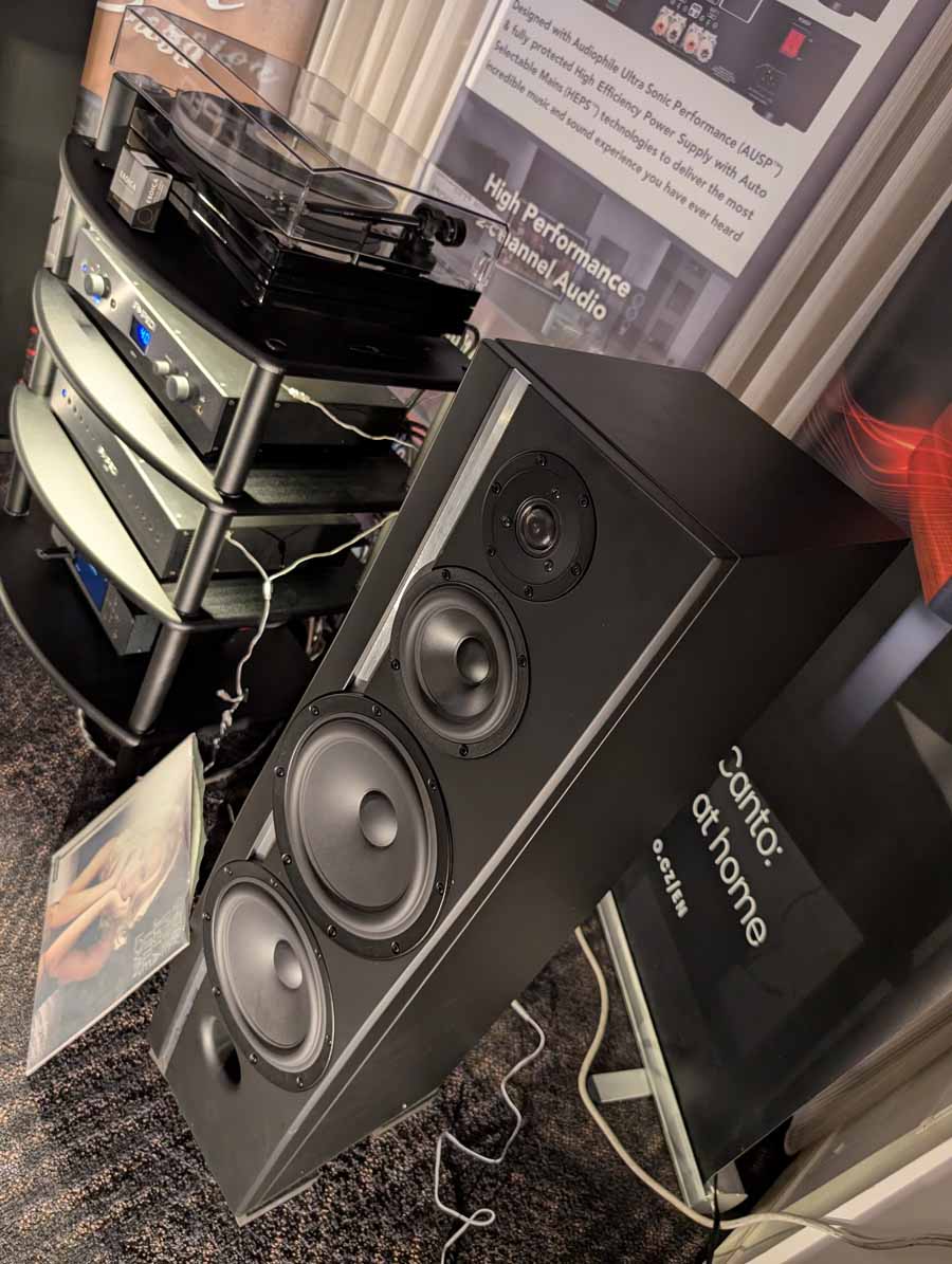 LAiV make some cool looking kit, and have spent some time expanding their range over the last year or so. In the demo system they had their Crescendo Verse and Crescendo Chorus, paired with a Volumio Rivo+ streamer, Vinshine mains conditioner, and Pure Audio Project open-baffle speakers.