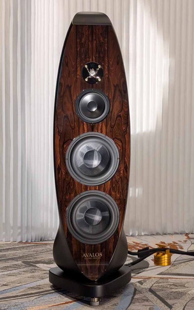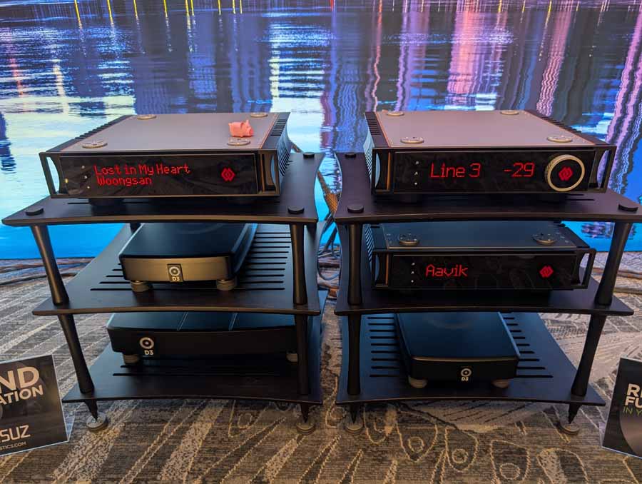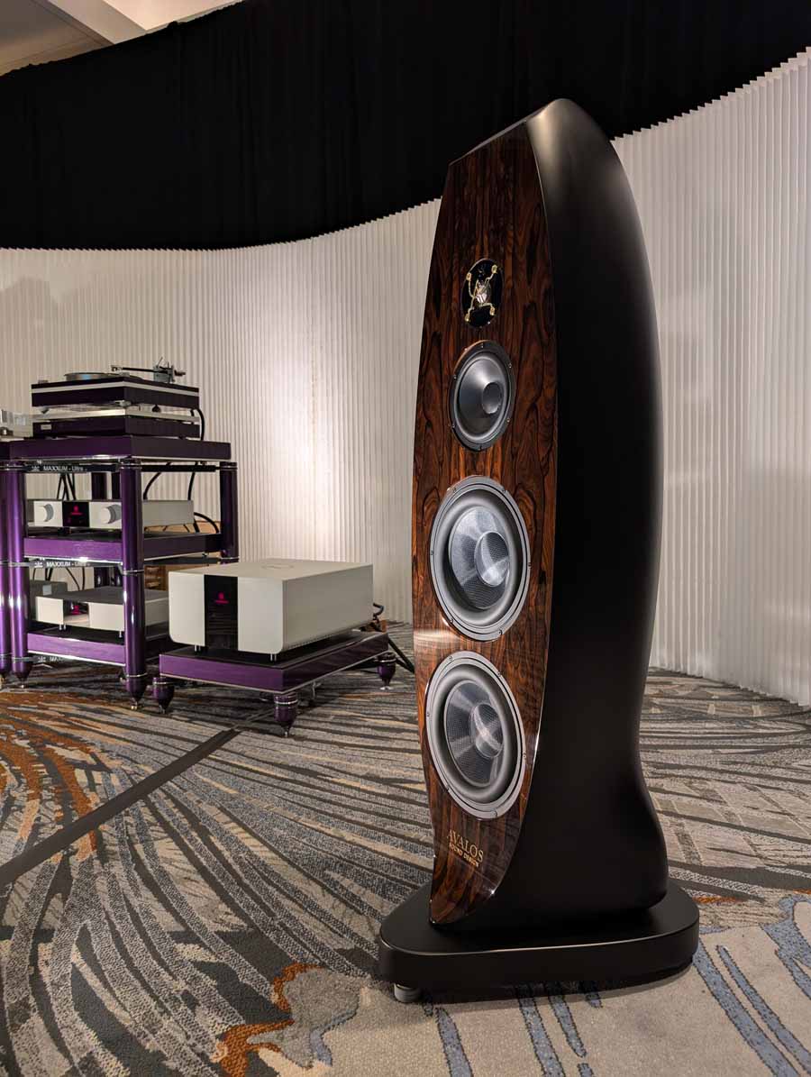 Wynn Audio featured the Avalos Ola floorstand speakers, paired with Karan Acoustics electronics including the POWERa mono amplifiers, LINEa preamplifier, and PHONOa phono preamplifier. They also showcased the Metronome Kalista DreamPlay XC SACD/CD player (with built-in streamer), alongside a Thiele TT-01 turntable with the TA-01 zero tracking error tonearm for the analogue source. The system was rounded out with Fono Acustica cables, an Entreq Olympus Hero groundbox, and a Critical Mass Systems MAXXUM-Ultra rack with Center Stage and O-BIT Audio footers.