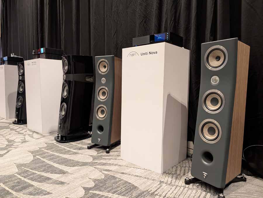 Naim / Focal were showing off the new Mu-So Hekla that we saw in Bristol, it’s a streaming active speaker, they can also work as a 7.1.2 soundbar. They also had the new Focal Diva Mezza Utopia active wireless speakers, Maestro Utopia Evo speakers, Naim NSS 333 streamer, NAC 332 pre-amp, and NAP 350 power amps.