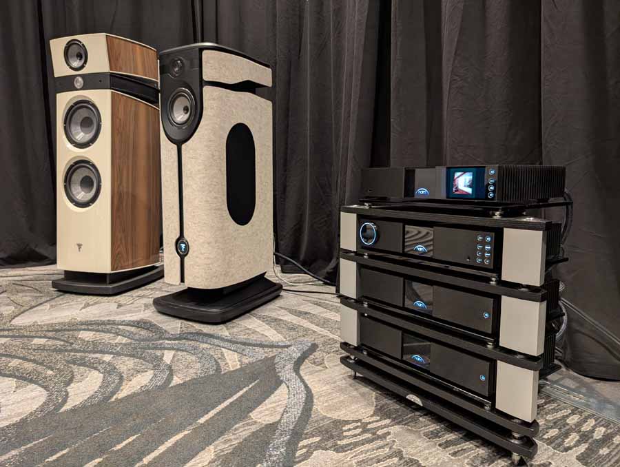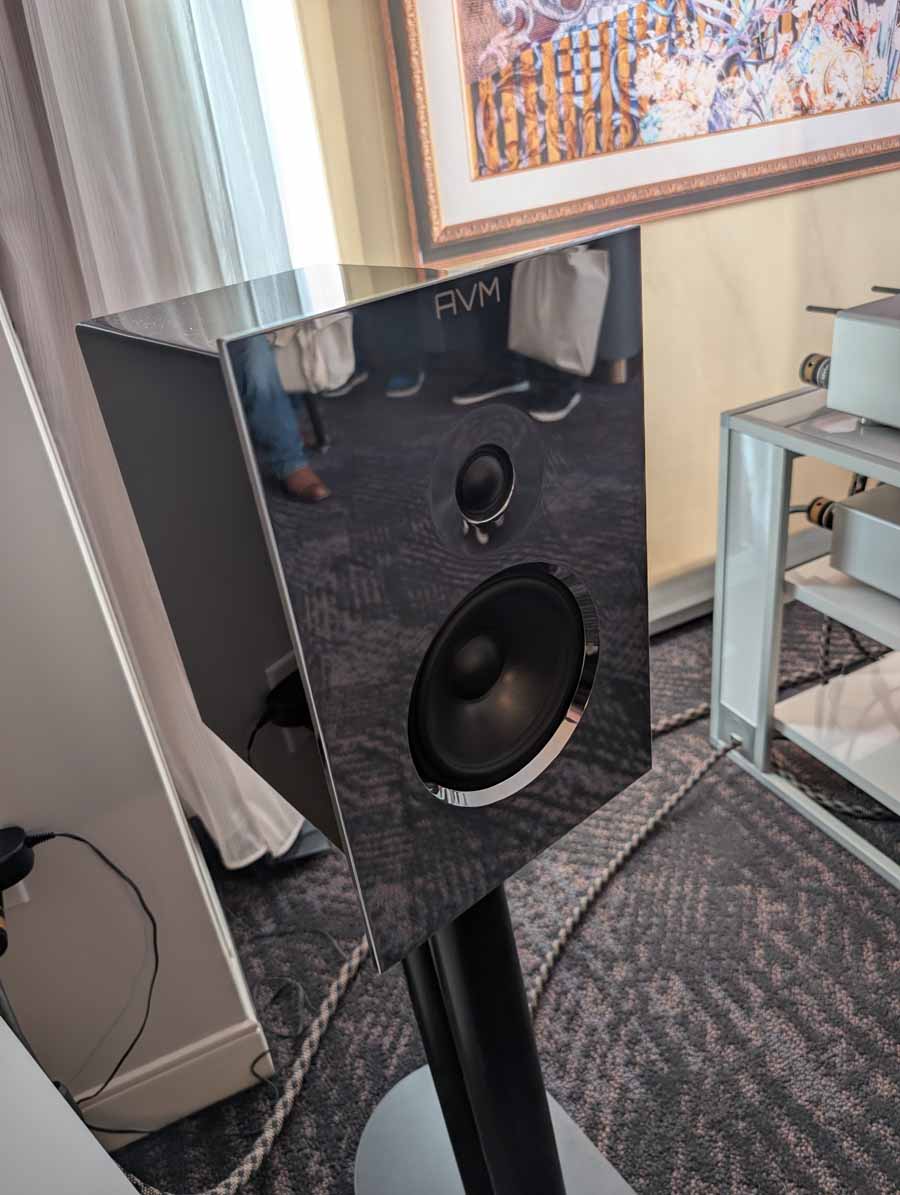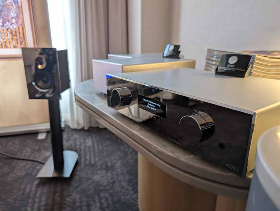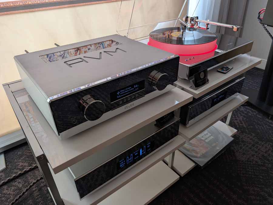 This was the US debut of the new Ovation series, and AVM were showcasing the new CS 8.3 S all-in-one streaming system with CD and phono stage, AS 8.3 S integrated amplifier, PAS 8.3 S preamplifier, and MP 8.3 S media player. The room also featured a wide range of AVM products on display, from their Class A/AB monoblock amplifiers through to their all-in-one systems and source components.