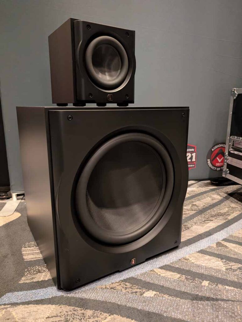 In the first REL room, you had a static display of a few of their models, with reps on hand to give advice as to which sub would be best suited to your system.