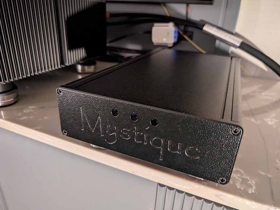 In here you had the Mystique Z Quantum DAC along with their “One Box Wonder” music server. They were playing this through a pair of Aretai speakers, with a Staccato BU-01 integrated amplifier, great sound in this room, it was clear yet full sounding.