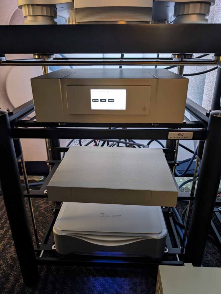 The last Quintessence room had the Wilson Audio XVX speakers driven by Audio Research electronics, including the Ref 10 phono preamp, Ref 6SE preamp, and Ref 330 mono power amps. Digital duties were handled by the dCS Vivaldi Digital Music System paired with an Innuos stack consisting of the Nazare server, and the brand-new Nazare Net, and Nazare Flow.