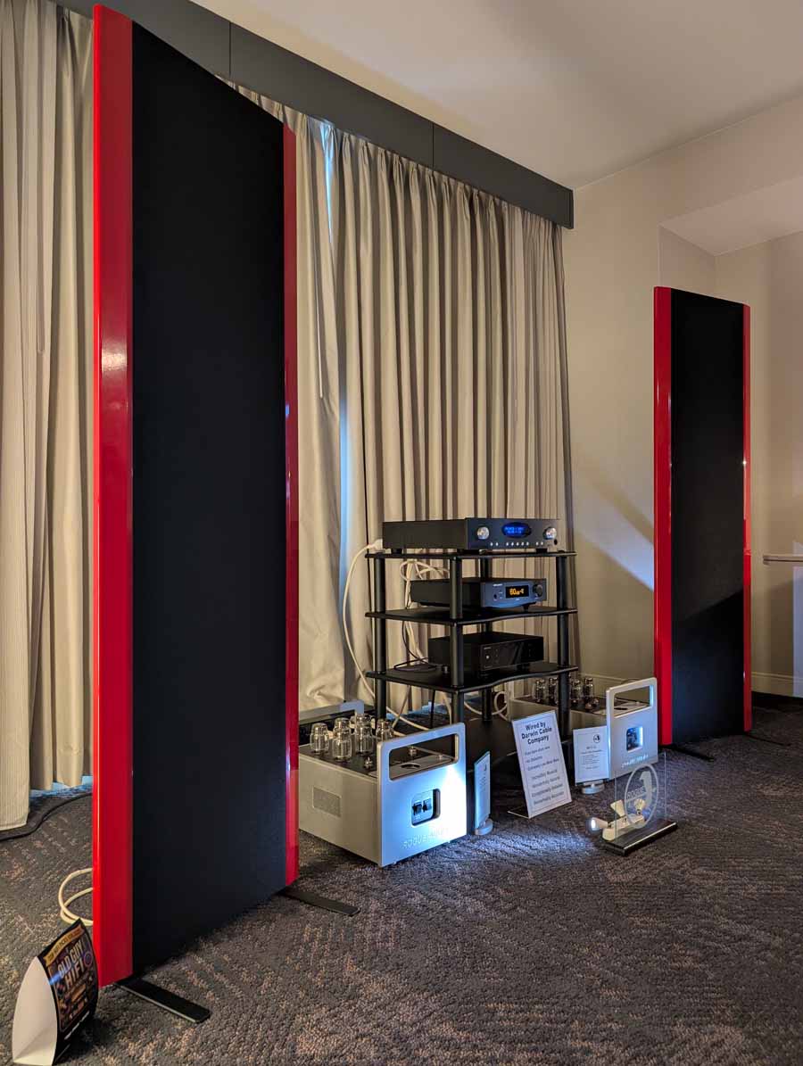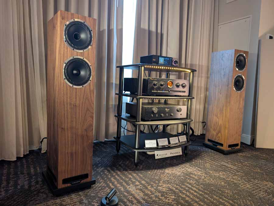 This was one of the more “affordable” rooms at the show, and the Fyne speakers punch above their price point in terms of sound and presence.