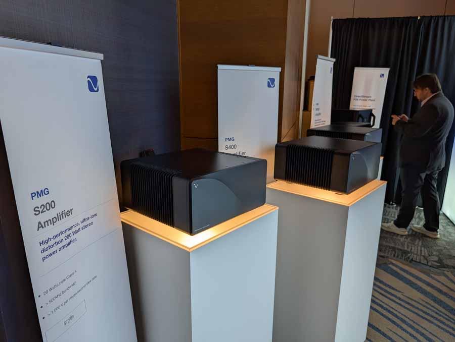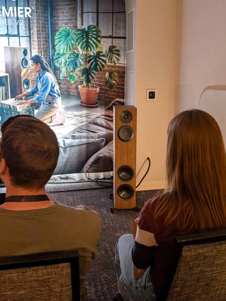 The room also displayed the smaller Premier V2 220 floorstanders and V2 120 bookshelf models around the room.