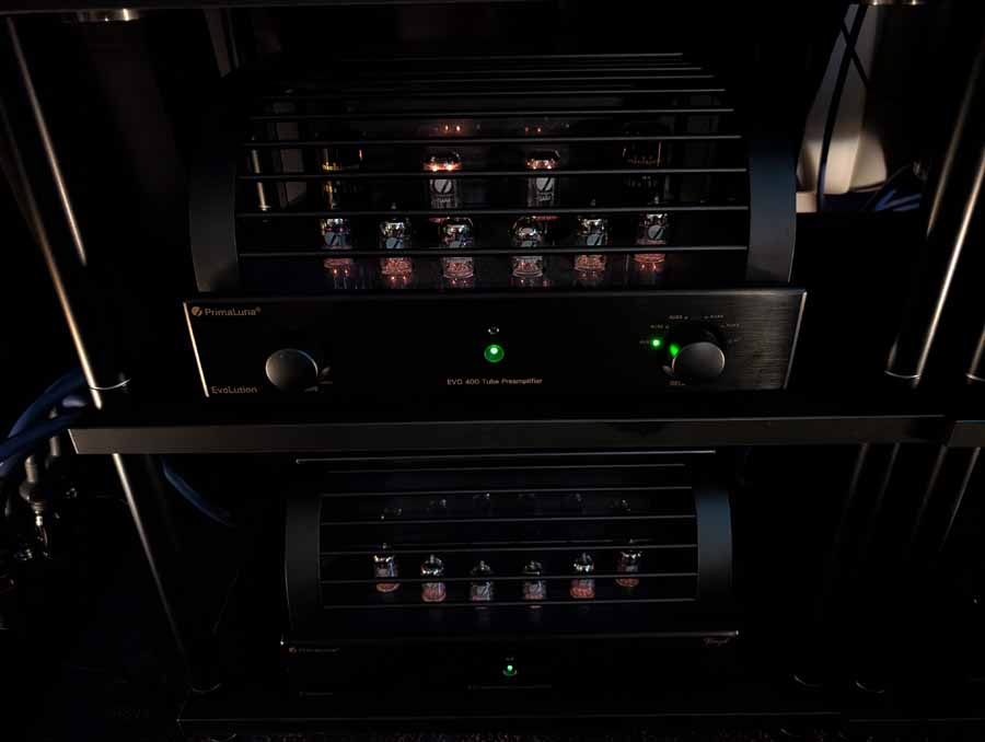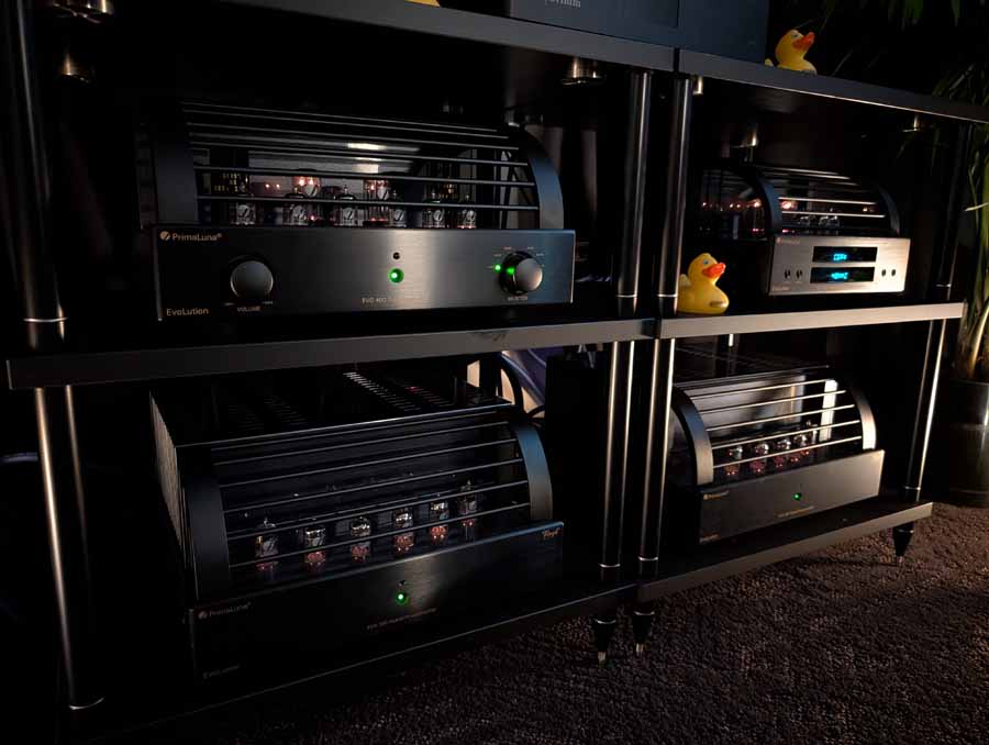 In system 1 you had the PrimaLuna EVO 300 tube hybrid power amplifiers paired with the EVO 400 tube preamplifier, driving the Fyne Audio Vintage TEN loudspeakers. The system was augmented by Fyne Audio Supertrax supertweeters and featured a digital front end consisting of a Grimm Audio MU1 music player and a PrimaLuna EVO 100 tube DAC.