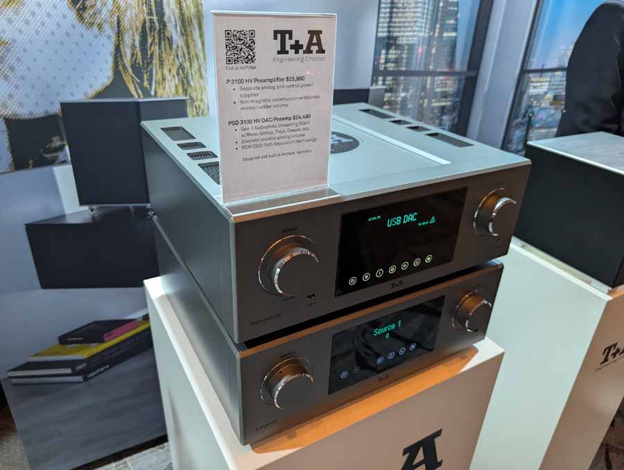 T+A had their new streamer/DAC/preamp in here, called the SDX 3100 H, alongside the new A 3100 HV stereo amplifier and PS 3100 HV external power supply.