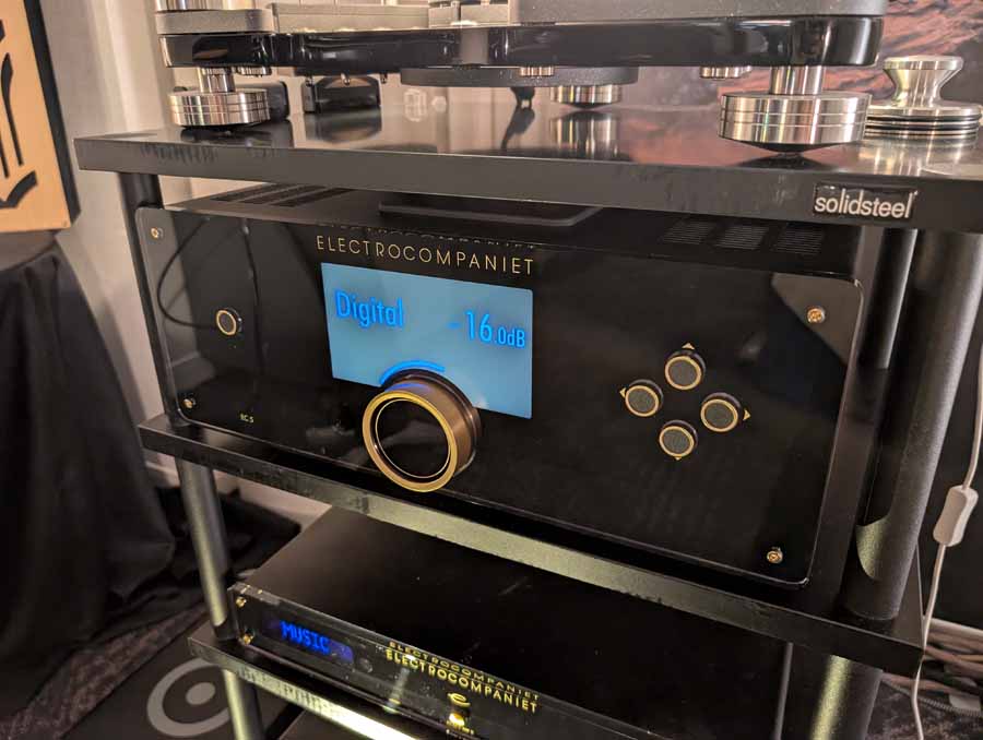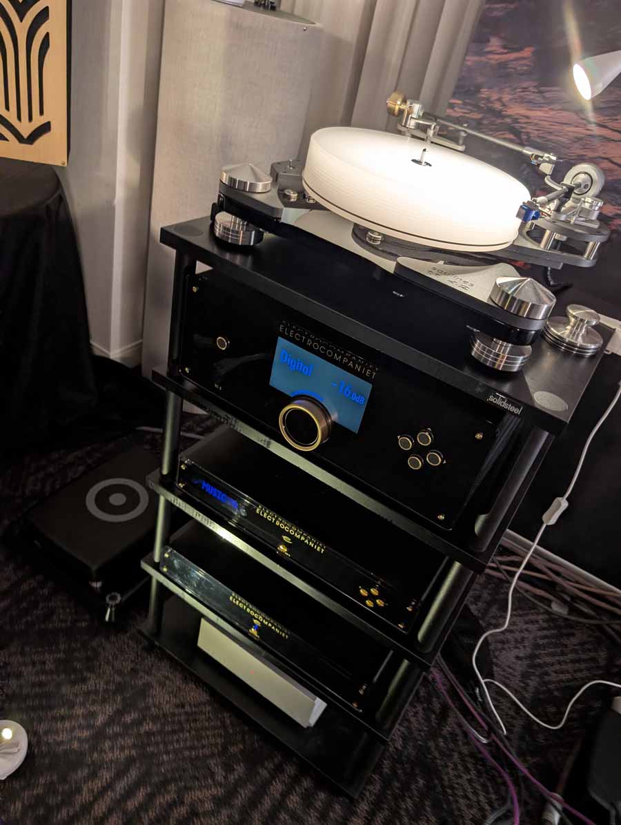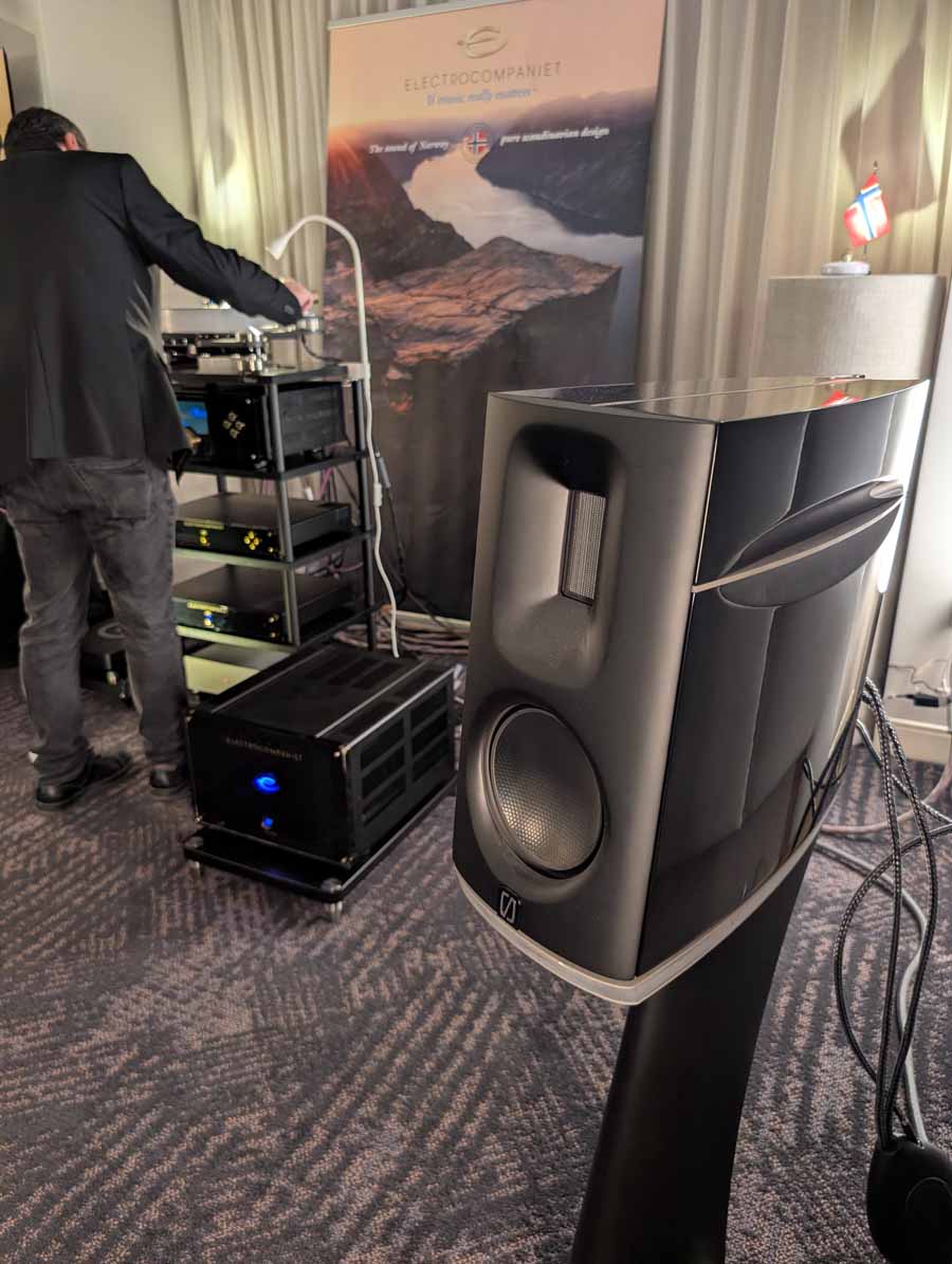 In the first Electrocompaniet room you had the new EC5 pre-amp paired with an AW 800 M amplifier, ECM 1 MKII streamer, ECP 2 MKII phono stage, Soulines TT 42 turntable, and Ansuz power conditioning. Speaker wise, you had the brilliant Borresen M1, the imaging from this system was simply out of this world, and the depth of the soundstage was huge. This was one of those wow systems – with the M1 also sounding far bigger than they look.