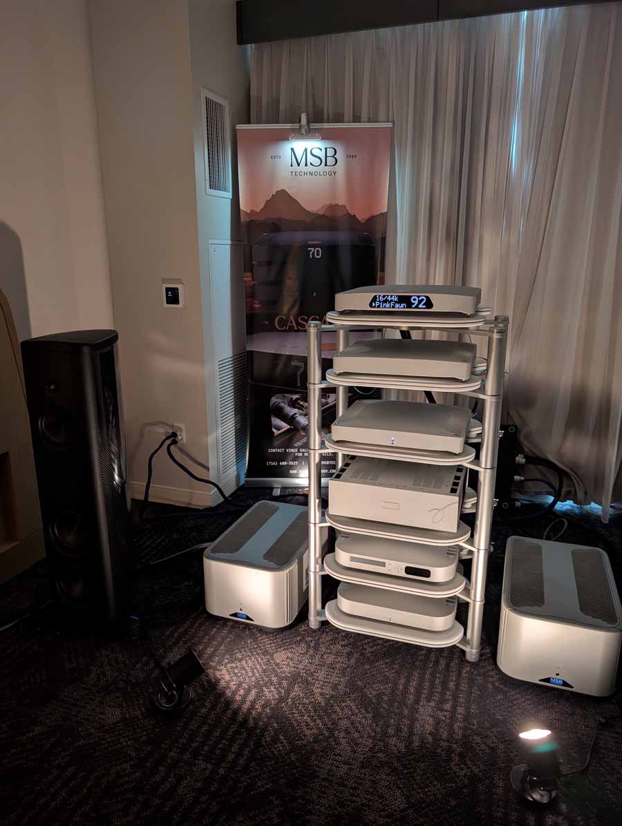 MSB had their Cascade DAC, alongside a pair of M500 mono amplifiers, Pink Faun 2.16 Ultra server/streamer, and Magico S3 speakers.