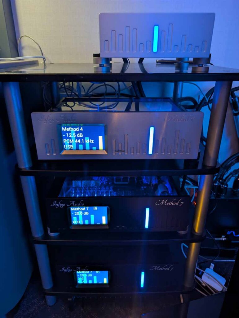 This is a name I haven’t heard in a while, it was quite a dark and rather cool looking room, with Infigo Audio Method 7 monoblock amplifiers paired with the Infigo Audio Method 4 DAC and preamplifier driving some huge Altec Lansing speakers, with a few subs in the mix for good measure.