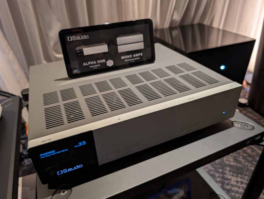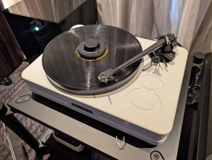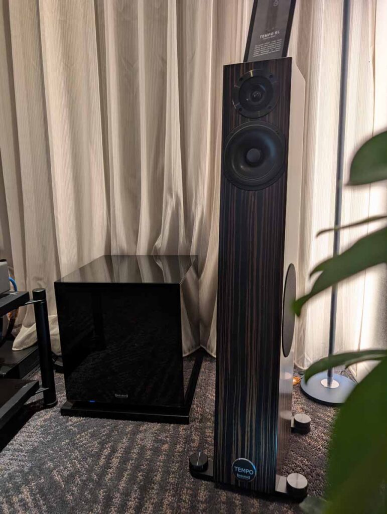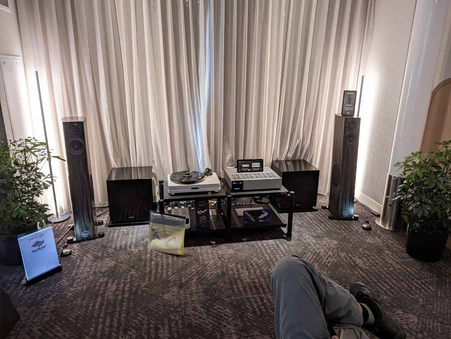 In their demo room they had a pair of Audio Physic Tempo SL speakers, accompanied by Audio Physic subs, SME Model 8 with Lyra Kleos cartridge and B.audio Alpha One integrated amplifier.